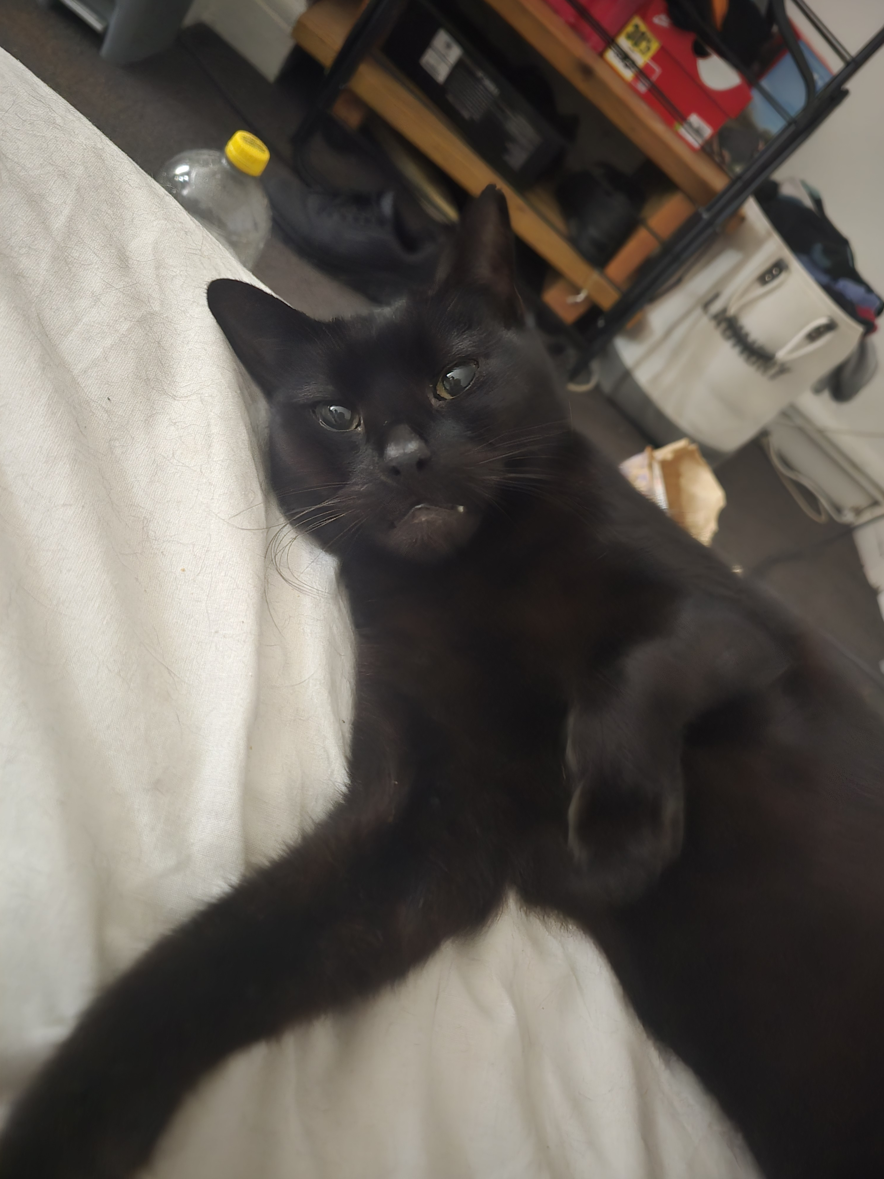 Oscar is a super loving cat he's never hissed at me in the year and a half I've owned him. He's quite skittish around new people but with treats and allowing him to come to you he gets comfortably decently fast. He has his moments of playfulness and he's extremely vocal and wants alot of attention.
