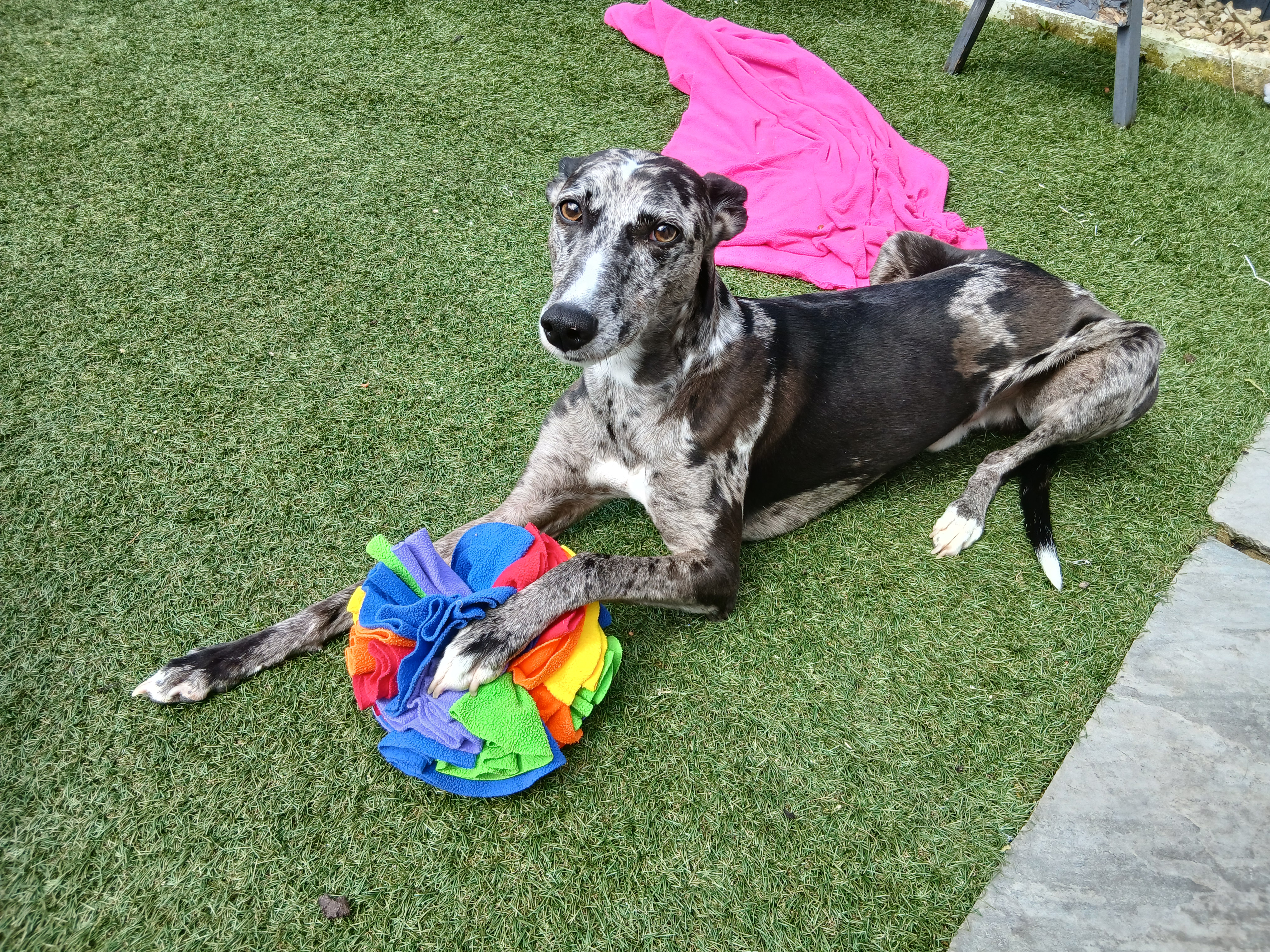 Sam is a sweet boy, he's great around children, adults, grooming and the vet. He can be reactive to dogs when he's with me but copes fine in daycare and boarding, and when I'm not around he's an angel according to the guys at the kennels. He's not keen on being left home alone, I suspect this is due to his past as he came to me as a rescue after his last owner passed. He has amazing recall, he's not really treat motivated but loves a pork pie and dental chews. He loves his cuddles on the sofa.