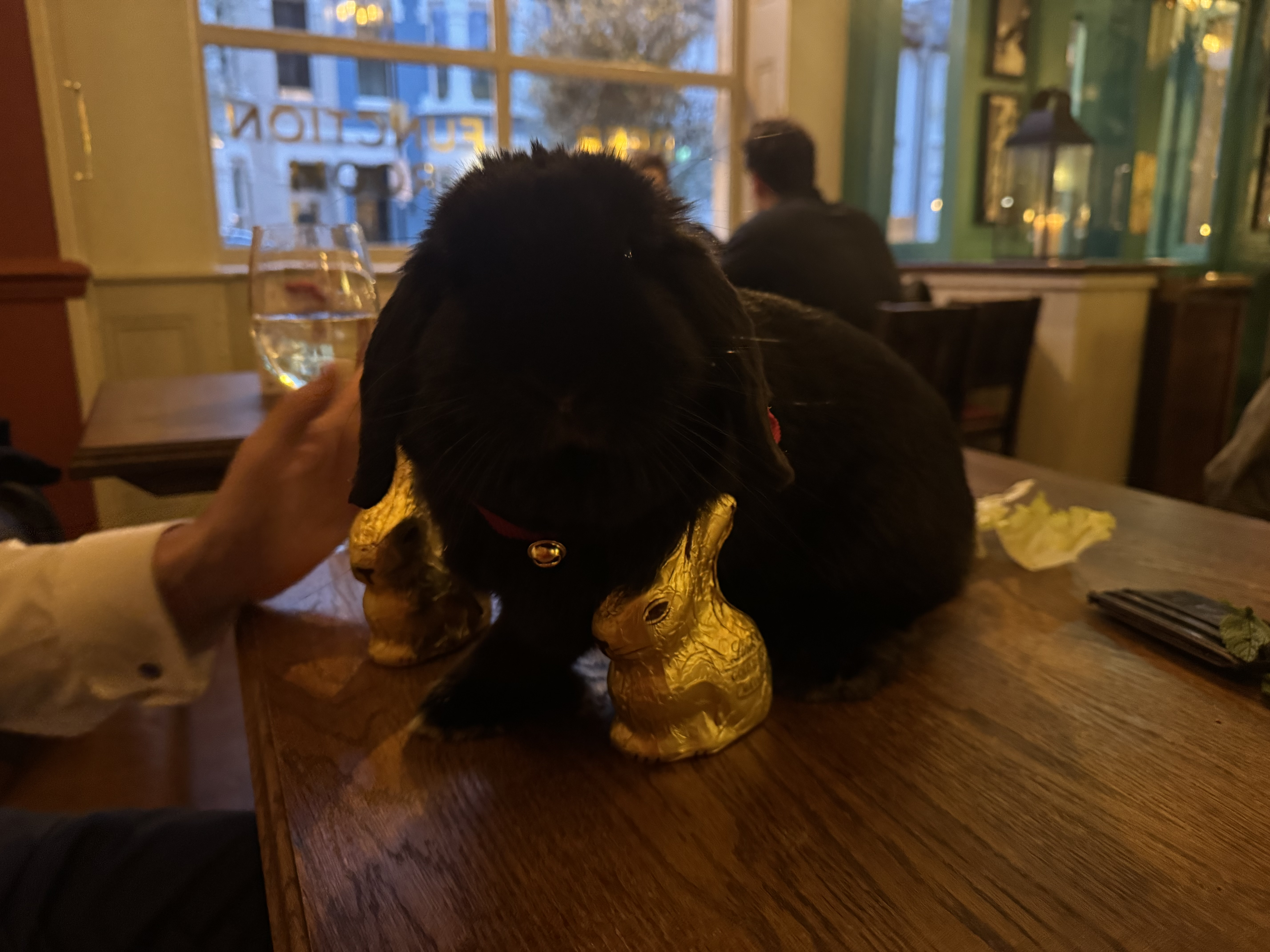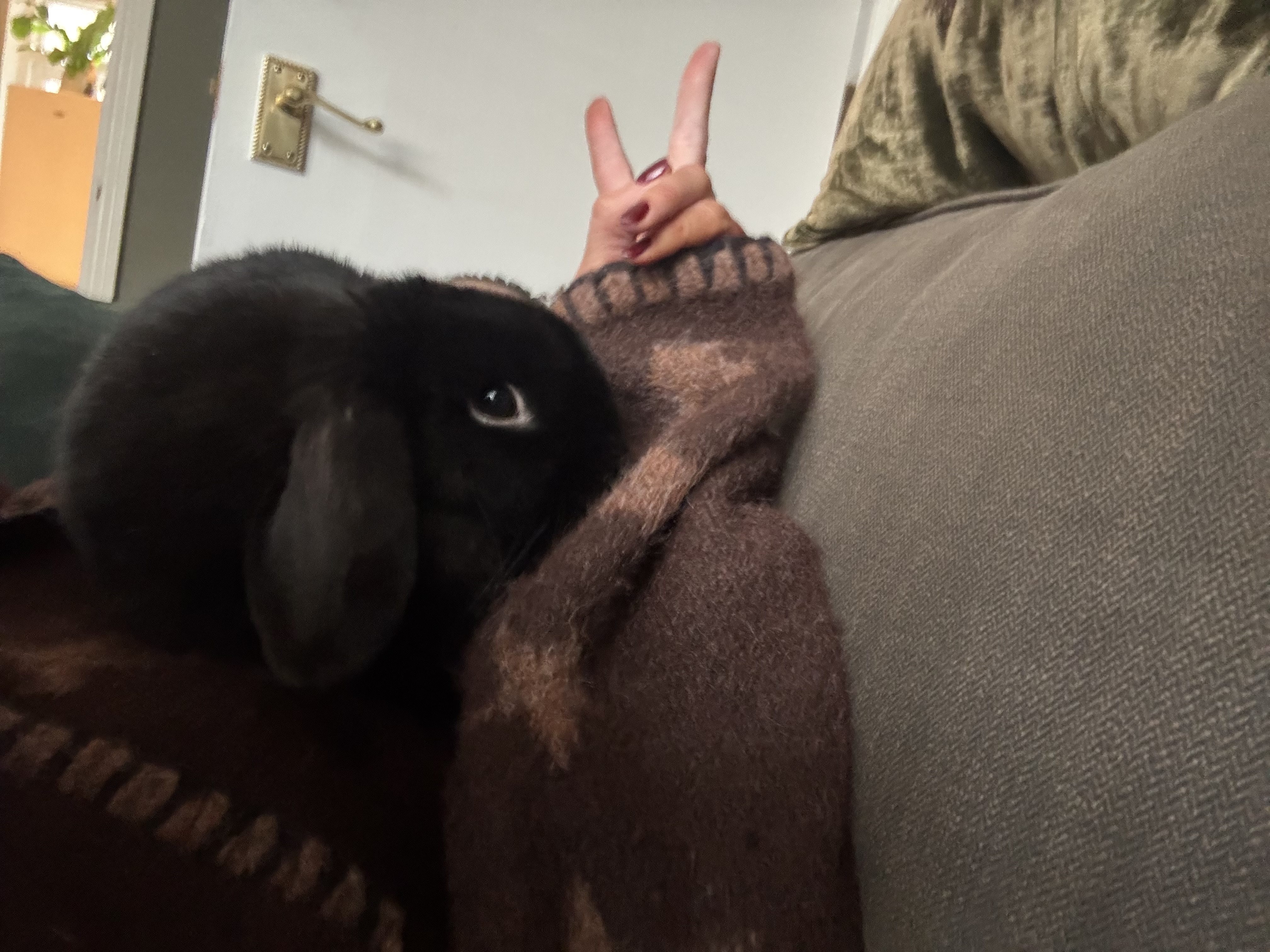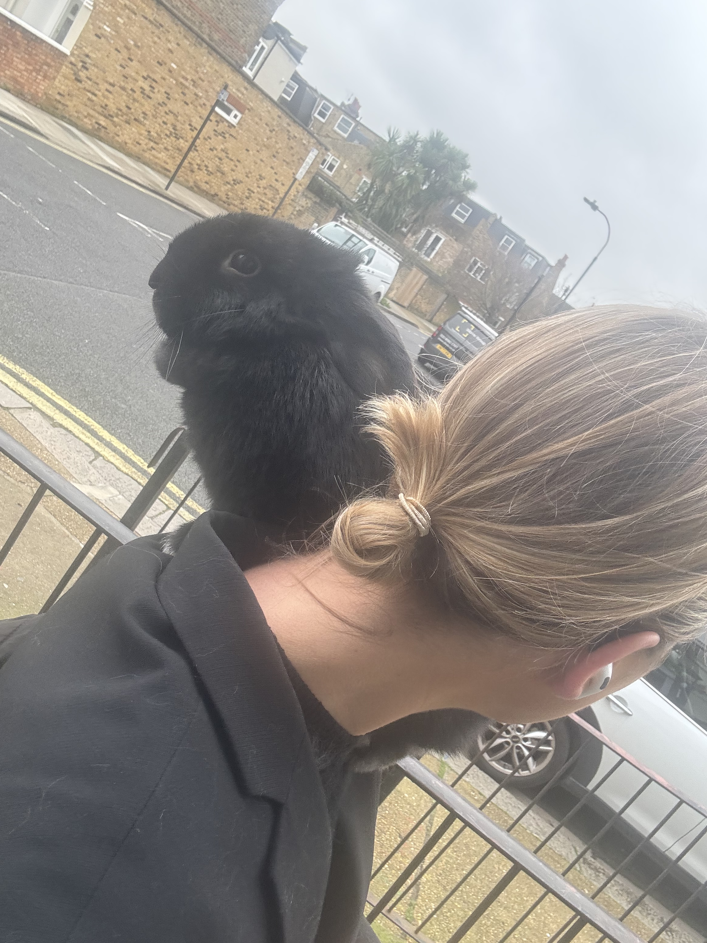 - I have the most beautiful rabbit, I got her from a baby and she is extremely friendly and not timid at all. We have been joined at the hip, she comes to the pub, goes on the bus and sits on my shoulder like a parrot when we are walking around London. I have never had a rabbit with a temperament and relaxation like her. I am in tears that I have to give her away but I am moving and can no longer give her a good life with space and love. She really is extremely special. She roams around comes up to you for kisses and chases you around when you are just doing chores or at home.