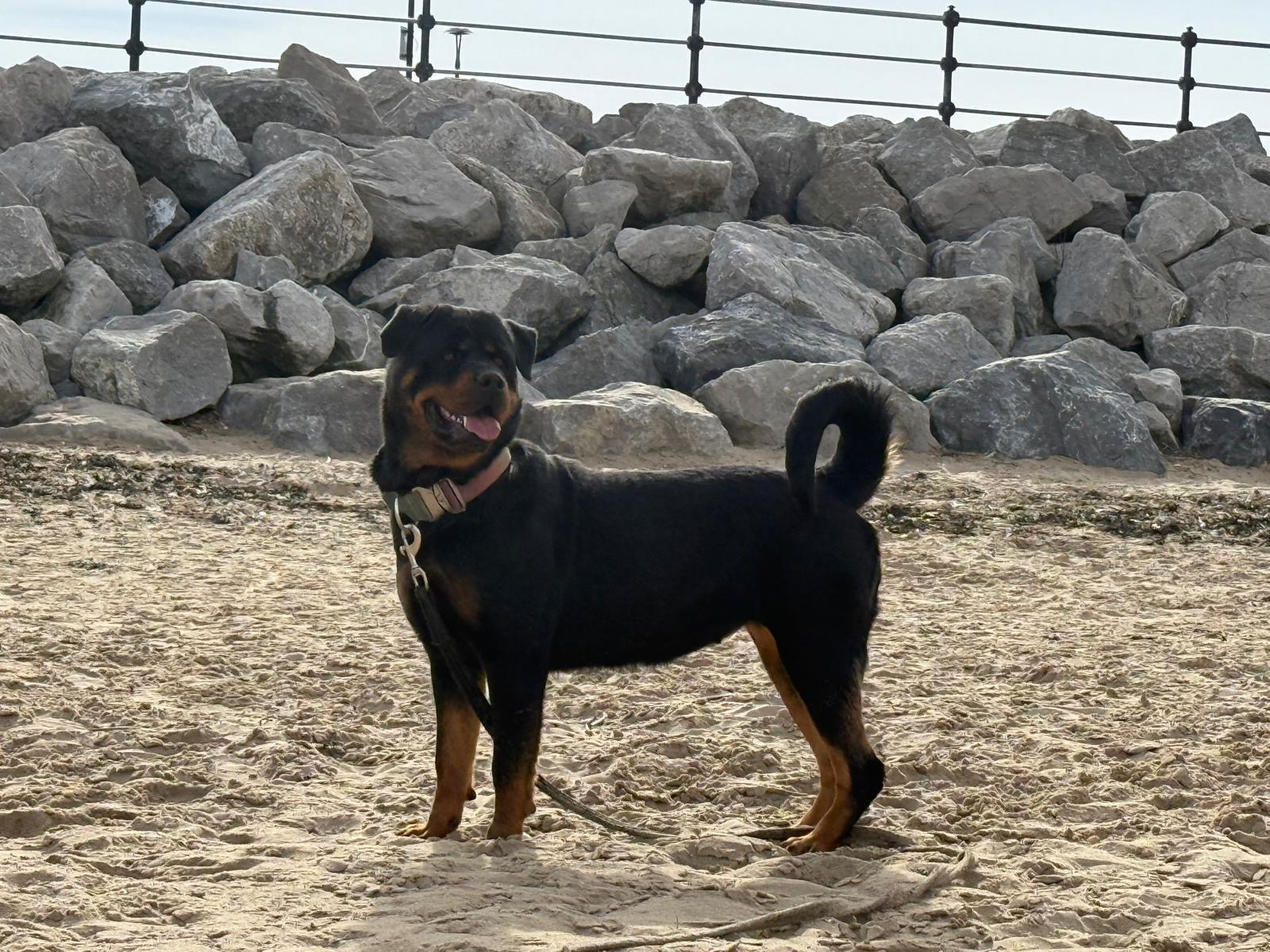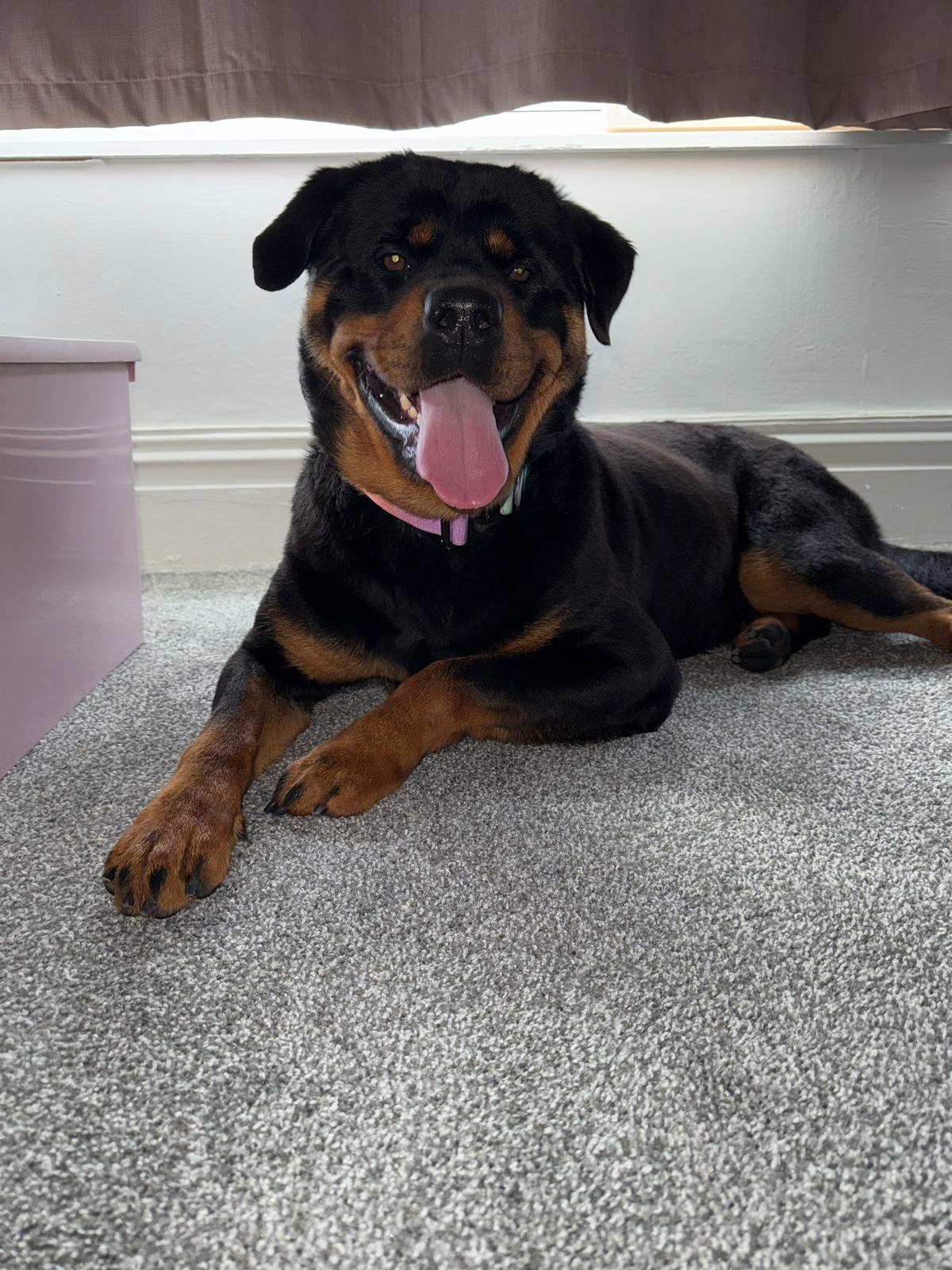 Unfortunately after a long hard decision, we have decided to rehome our beloved Rottweiler puppy. She is a beautiful dog, and we’ve had her for 18 months, but through no fault of our own, last year we were evicted due to the landlord wanting to sell her house. We have gone from having a large garden with outdoor shelter for her backing on to open space, to having a tiny yard with no shelter, and surrounded by four high walls, with no stimulation for her. Due to our busy life styles, she is left alone for periods of time, and has to be left in the garden due to Rottweiler’s notorious mischievous behaviours. She is a bubbly girl with loads of amazing qualities. She loves going on adventures, long walks, likes to explore water, but won’t fully get in. She loves to run, but has no recall. She likes dog parks where she can have the freedom. She also loves attention and cuddles. She has been raised around children, with 6 children to be exact, however, our two youngest children are terrified of her through no fault of Abel’s. The 2 youngest children become hysterical when she approaches them, which winds Able up. We did not know they were scared of dogs when we got Able and have tried to persevere to let the children adapt, but due to the house move, we have no space to separate them. It truly is breaking our hearts to have to do this, but Able deserves a better life, with someone who can give her the time and space she deserves. Ideally someone without young children as she just doesn’t realise how big she is.