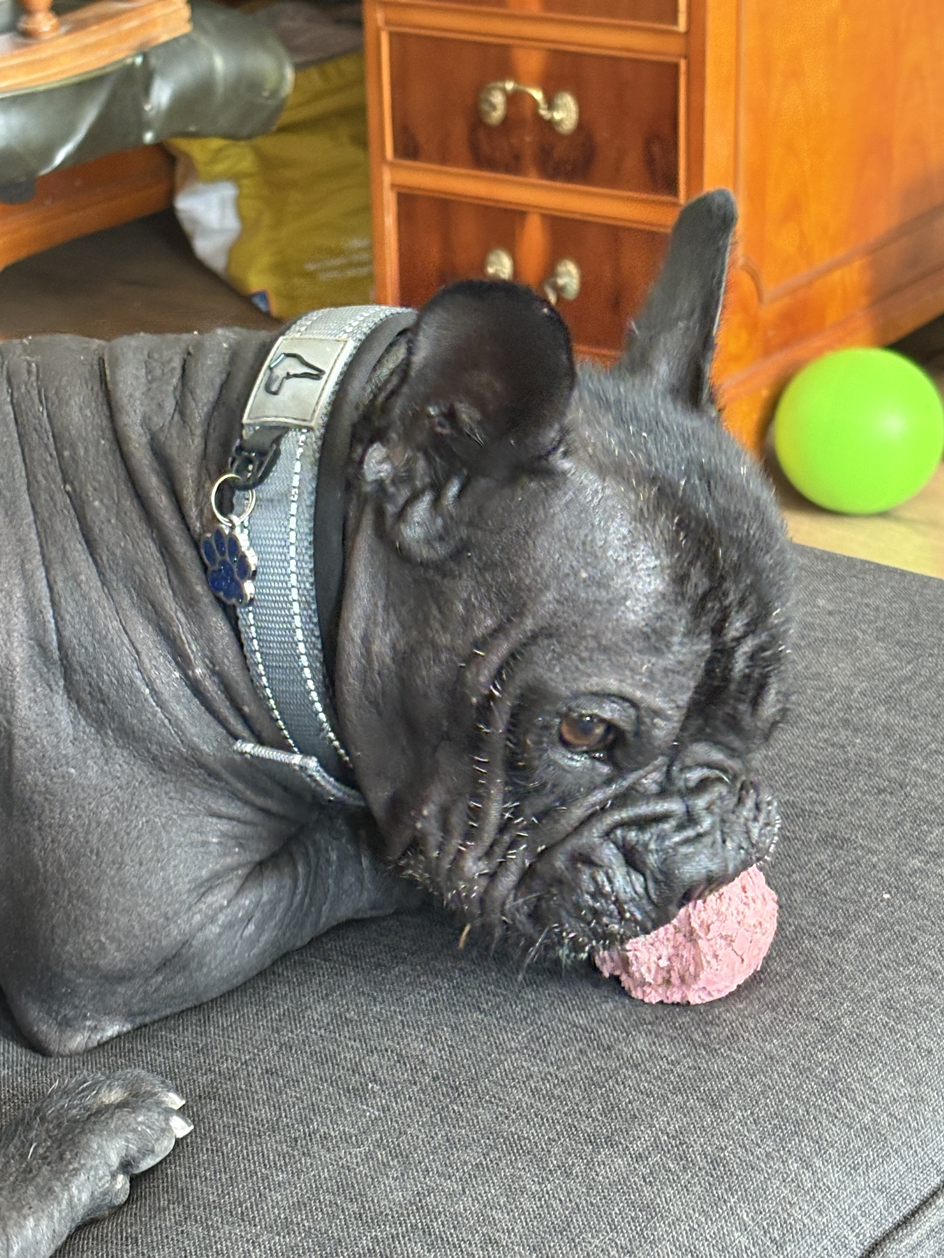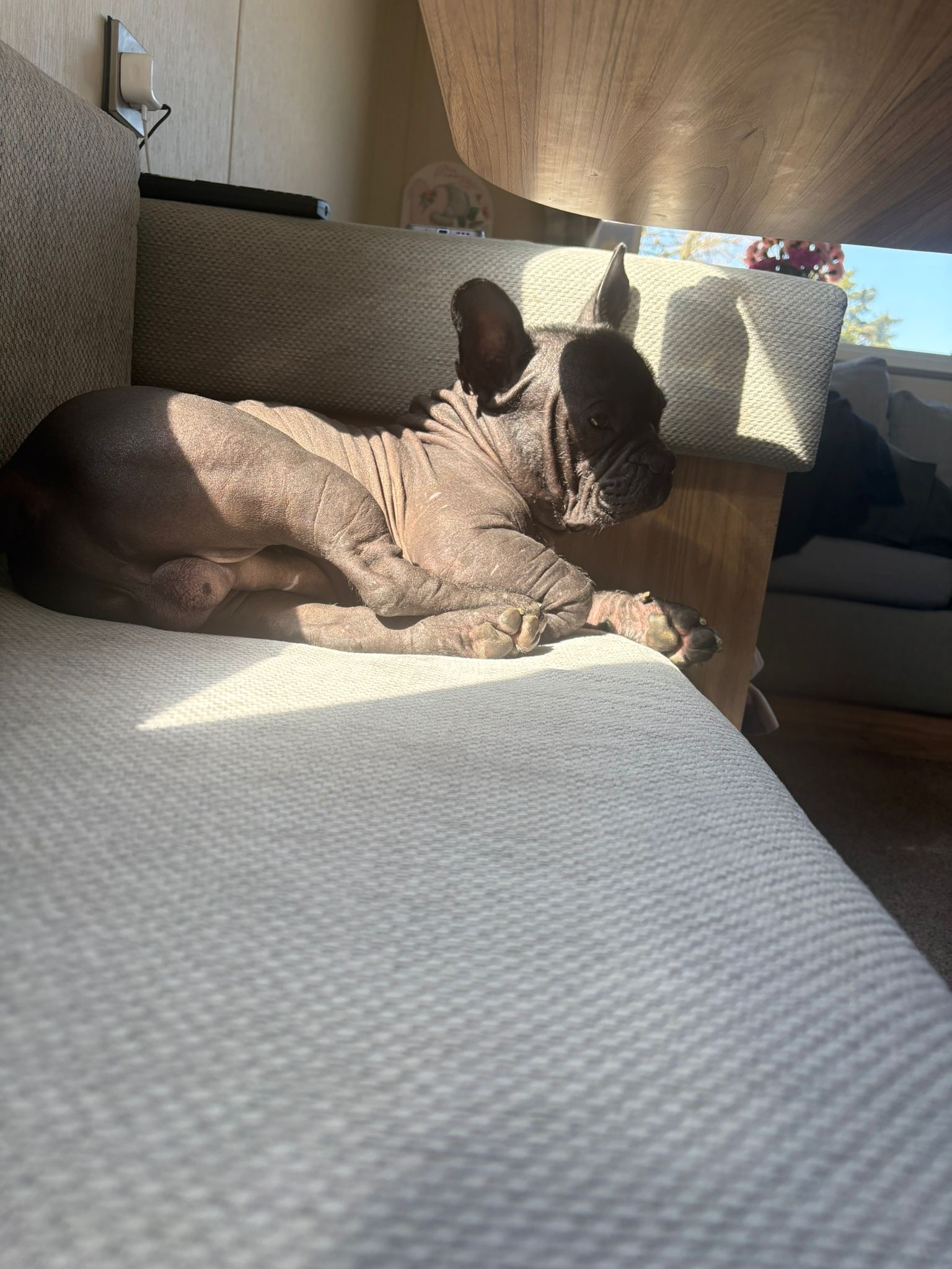 Camilo is a Hairless French Bulldog. He is super affectionate. Loves cuddles, play time, fetch, everything that he has company with. He lays in bed with you, he’ll snuggle into your legs on the sofa. He has so many quirks. He LOVES car journeys, Would definitely suit a driver. Honestly, never had a friend like him before. He has these expressions that has everyone love him. Everyone who sees him, wants him. We’re waiting for the perfect family. You’ll be blessed to have him in your life.