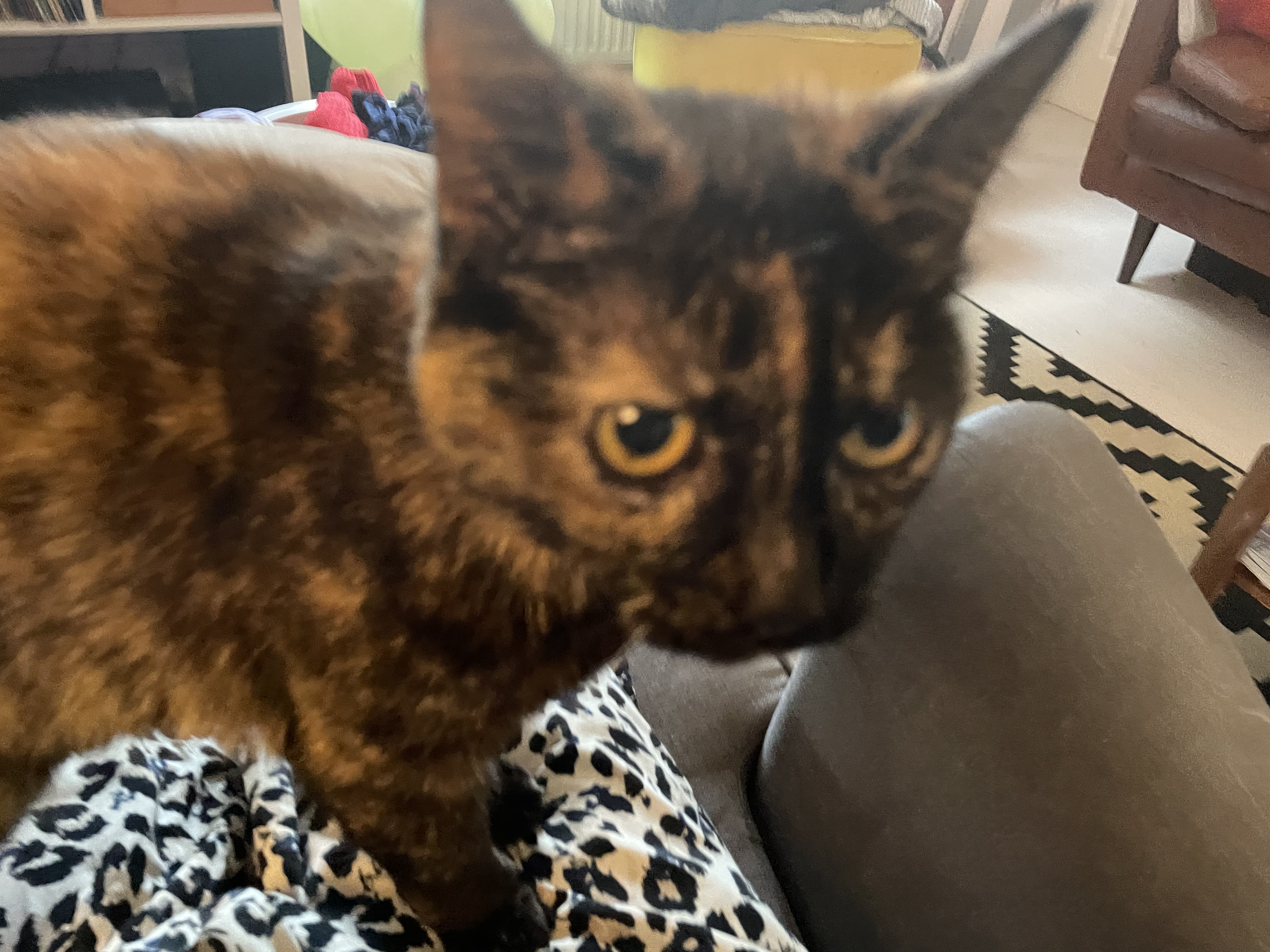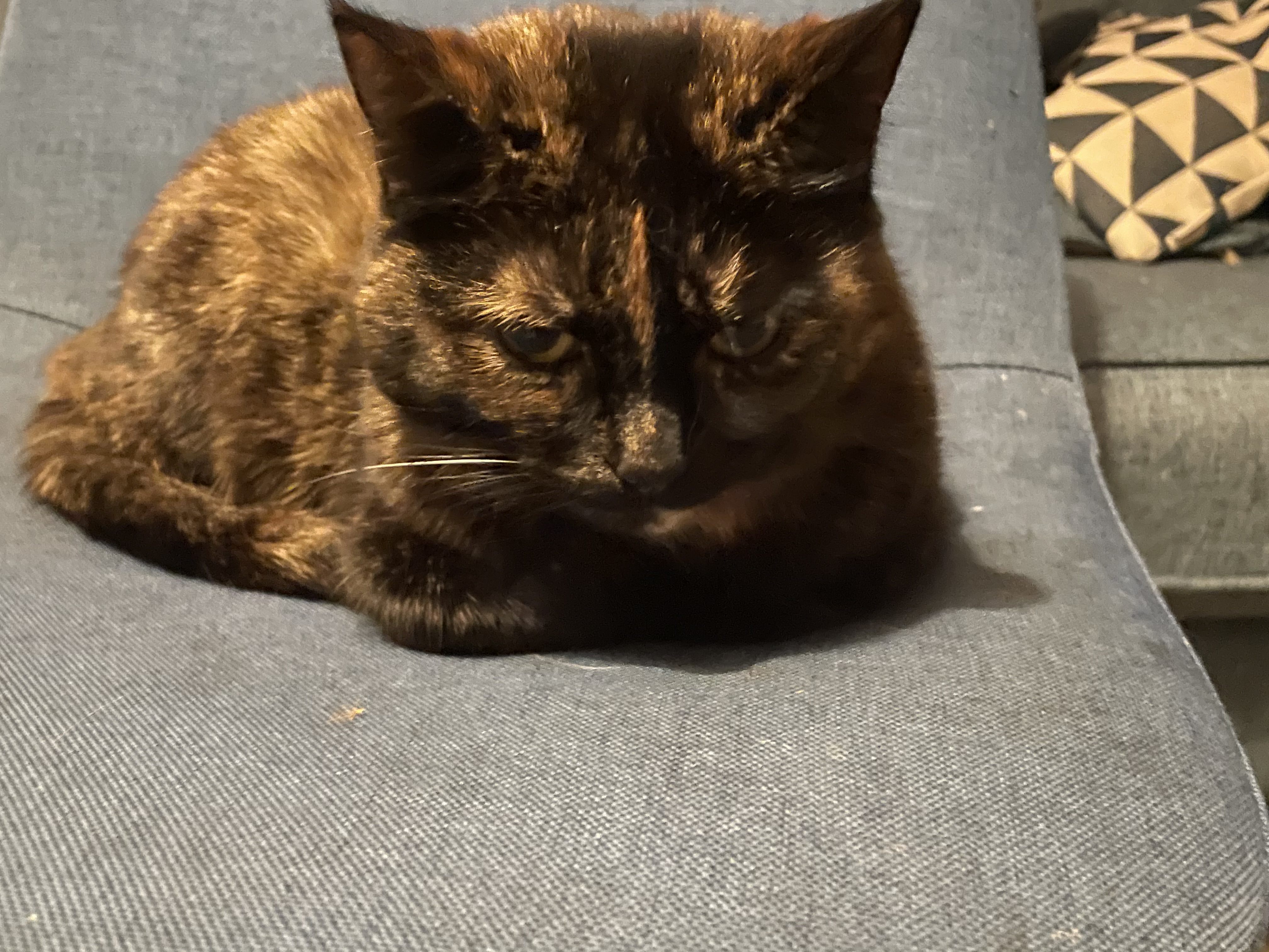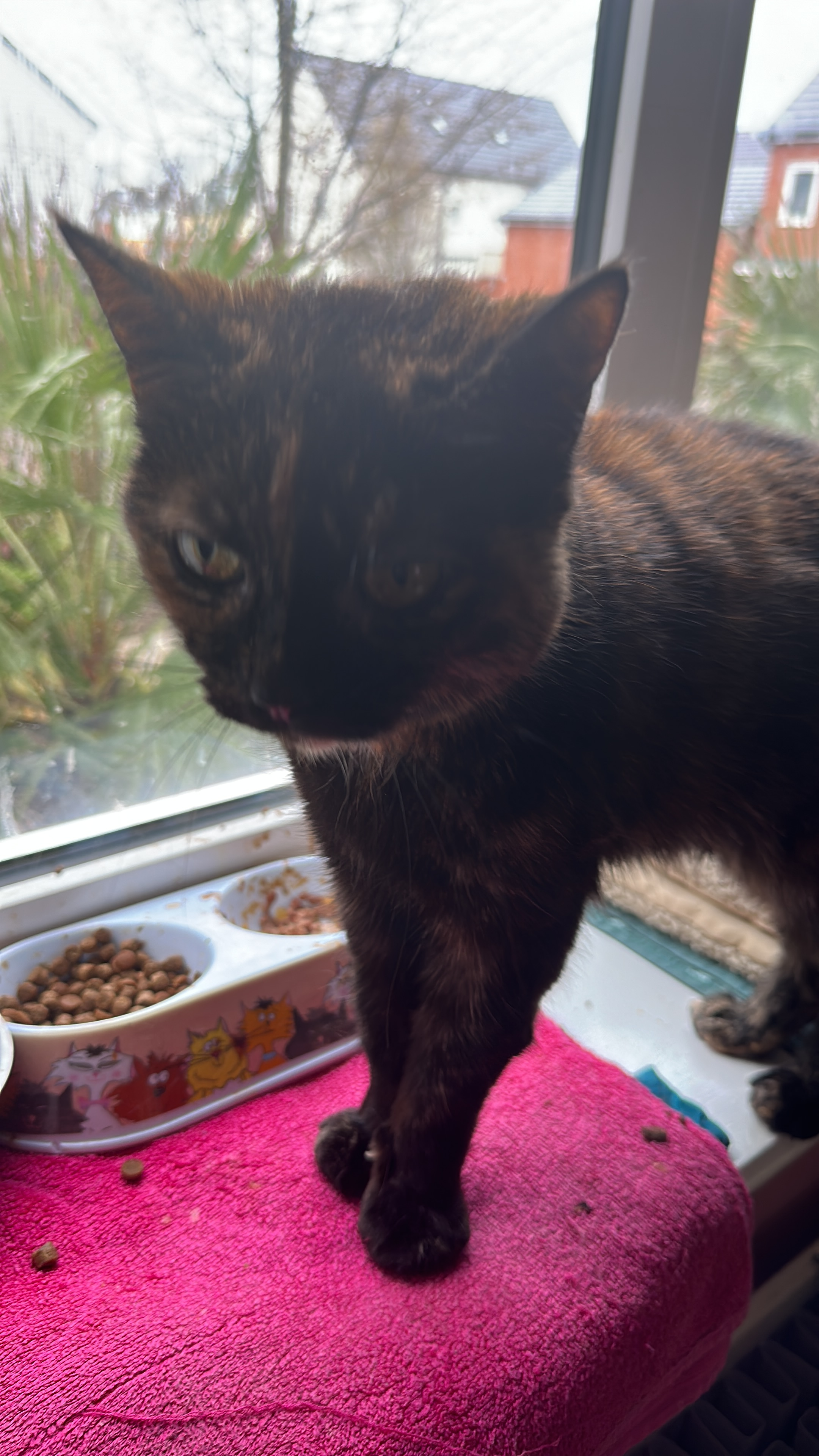 Cookie is an affectionate little cat. She is a tortie and so has a bit of an attitude but is extremely cute and loveable. She came to us as her family left the UK during lockdown and we expected her to be with us just a short while. However, she remains with us four years later and her family are not returning. We have four dogs and Cookie’s quality of life is not great as a result. She is a lovely little cat but we think she needs a family with no dogs to spend the remainder of her days. She is 17 but shows no signs of slowing down.