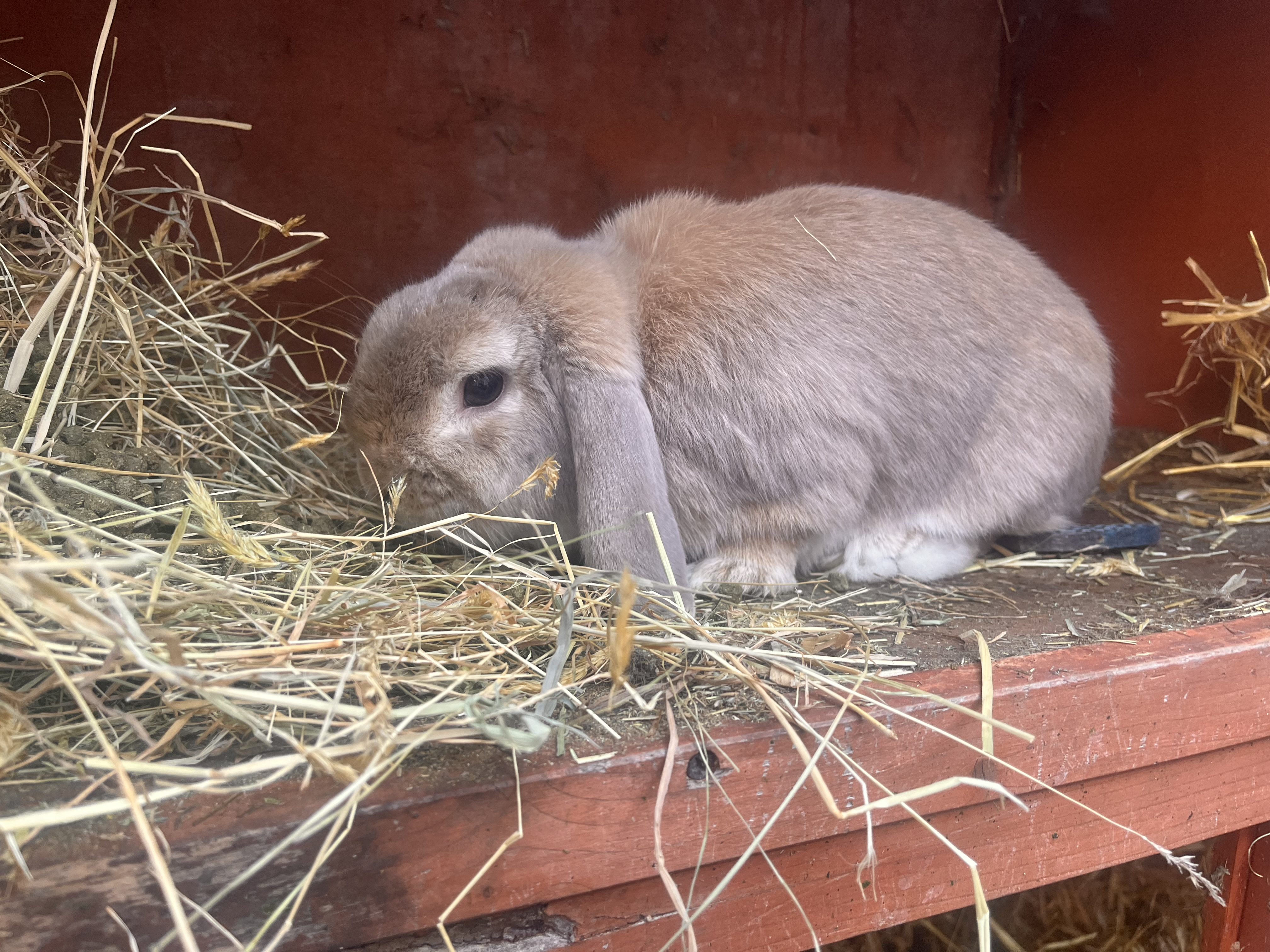 Cookie is a lovely friendly energetic mini lop. He loves to run, jump in the air, and follow me everywhere. He will lay down and rest his head as soon as you pet his head. He is also ok with being picked up for small amounts of time. He will thump the ground for attention. He loves his vegetables.
