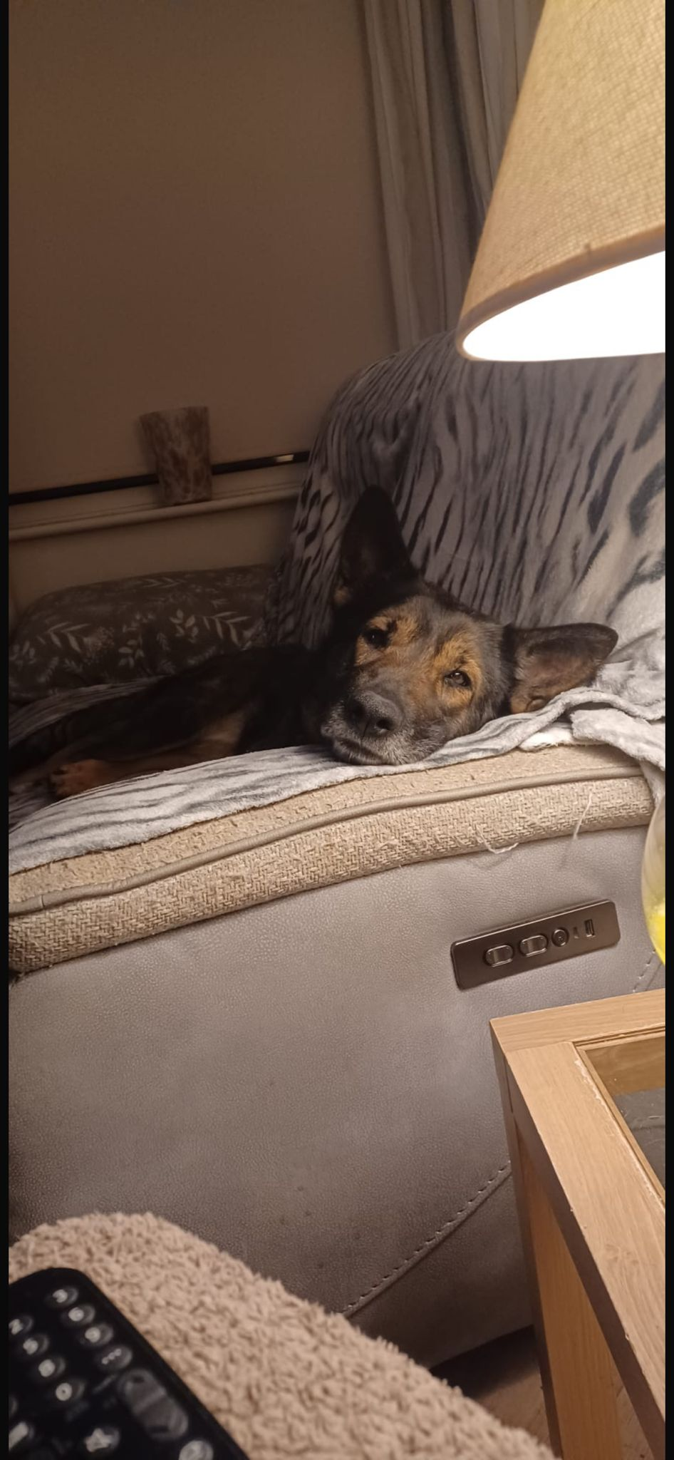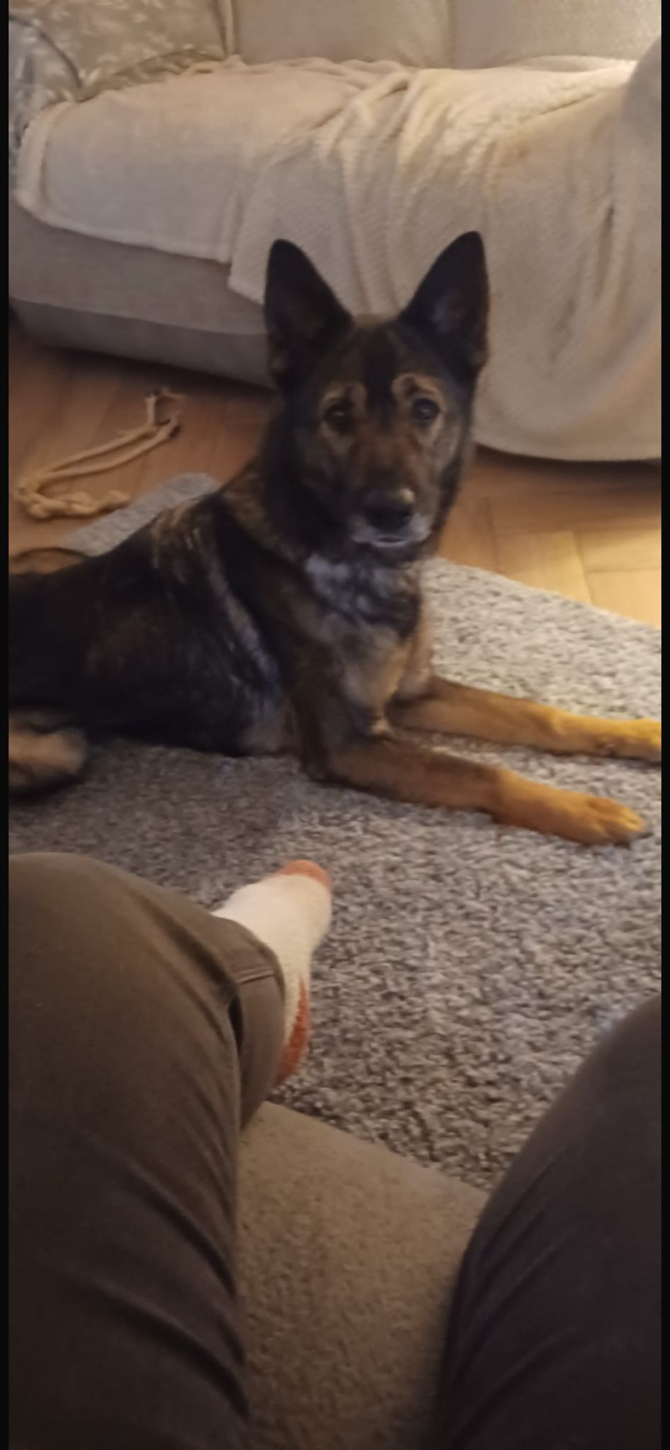 Denver is nice natured, good with people, children and other dogs. She can be bouncy and excitable upon first meet with new dogs and people but quickly settles down. Denver equally enjoys space to play and run aswell as lounging about. Especially if a cuddle is on offer.