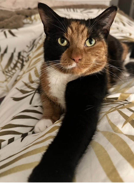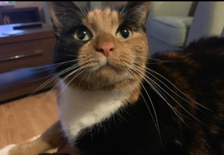 Loving girl cat she’s very scared with new people but warms easily and can be coerced with treats, I have a baby and she is good with her but not had her around children or other pets, I would suggest slow introduction. Apologies, my photos are not working. She loves cuddles and is happy being indoors as well as outdoors.