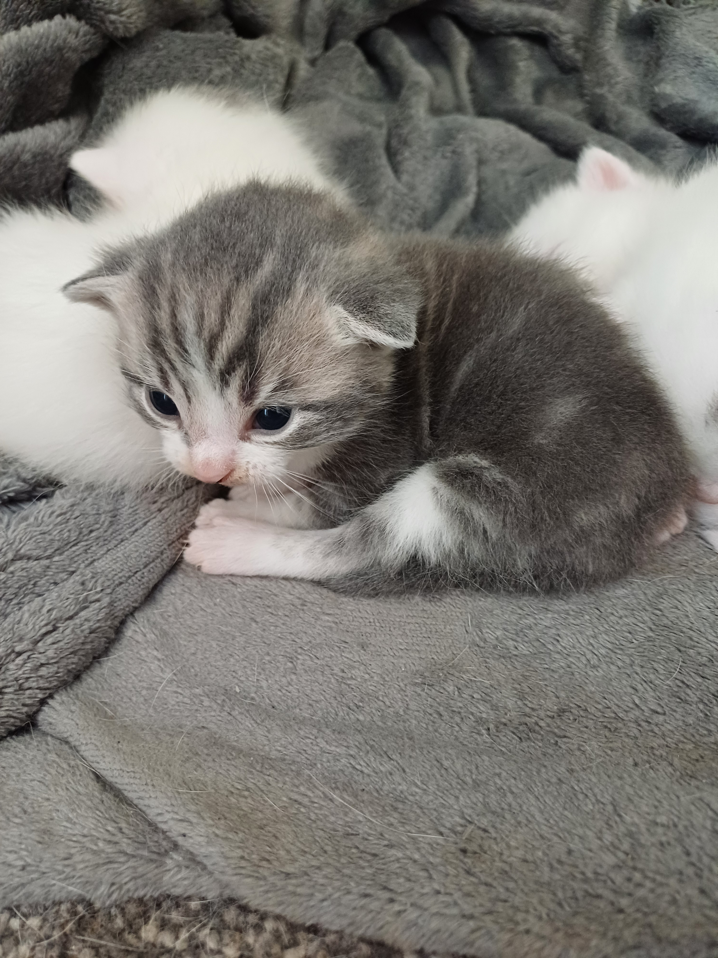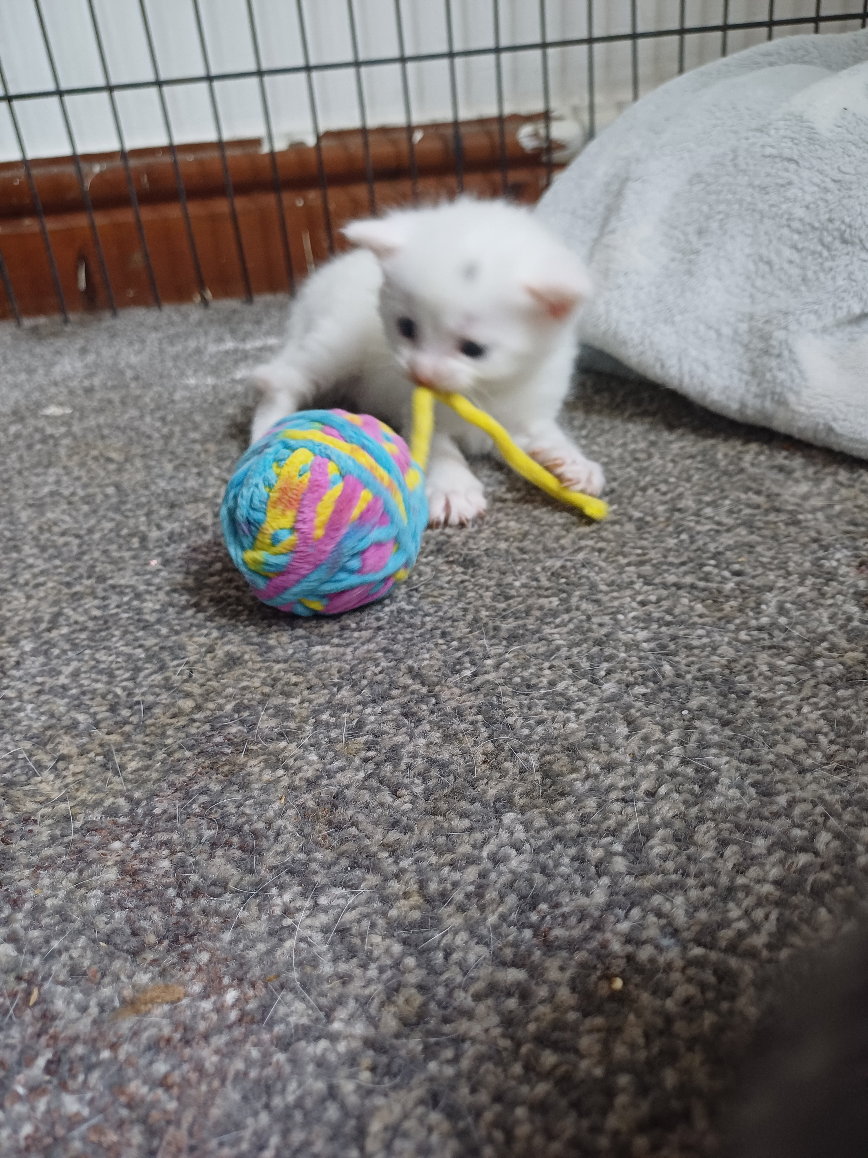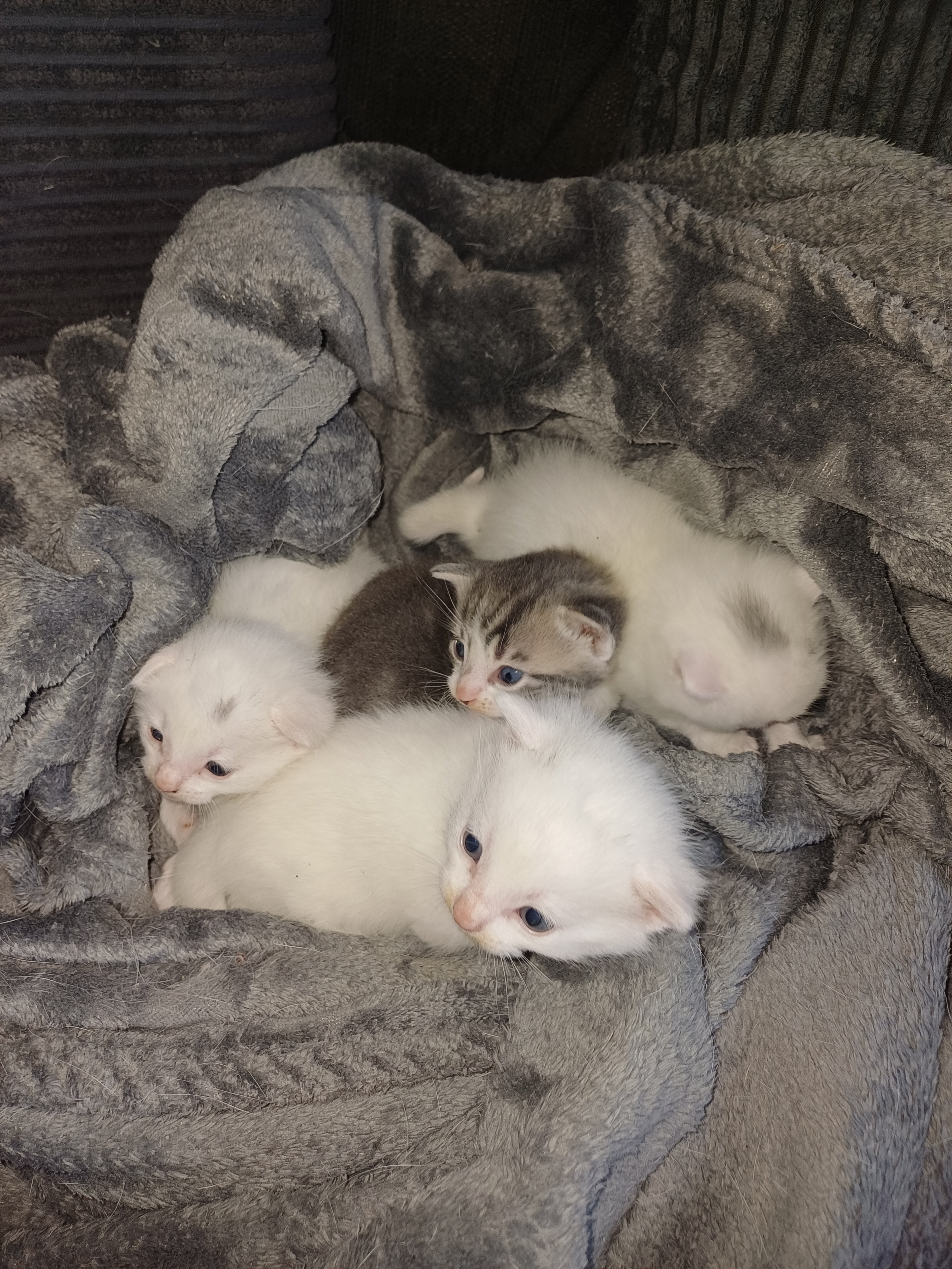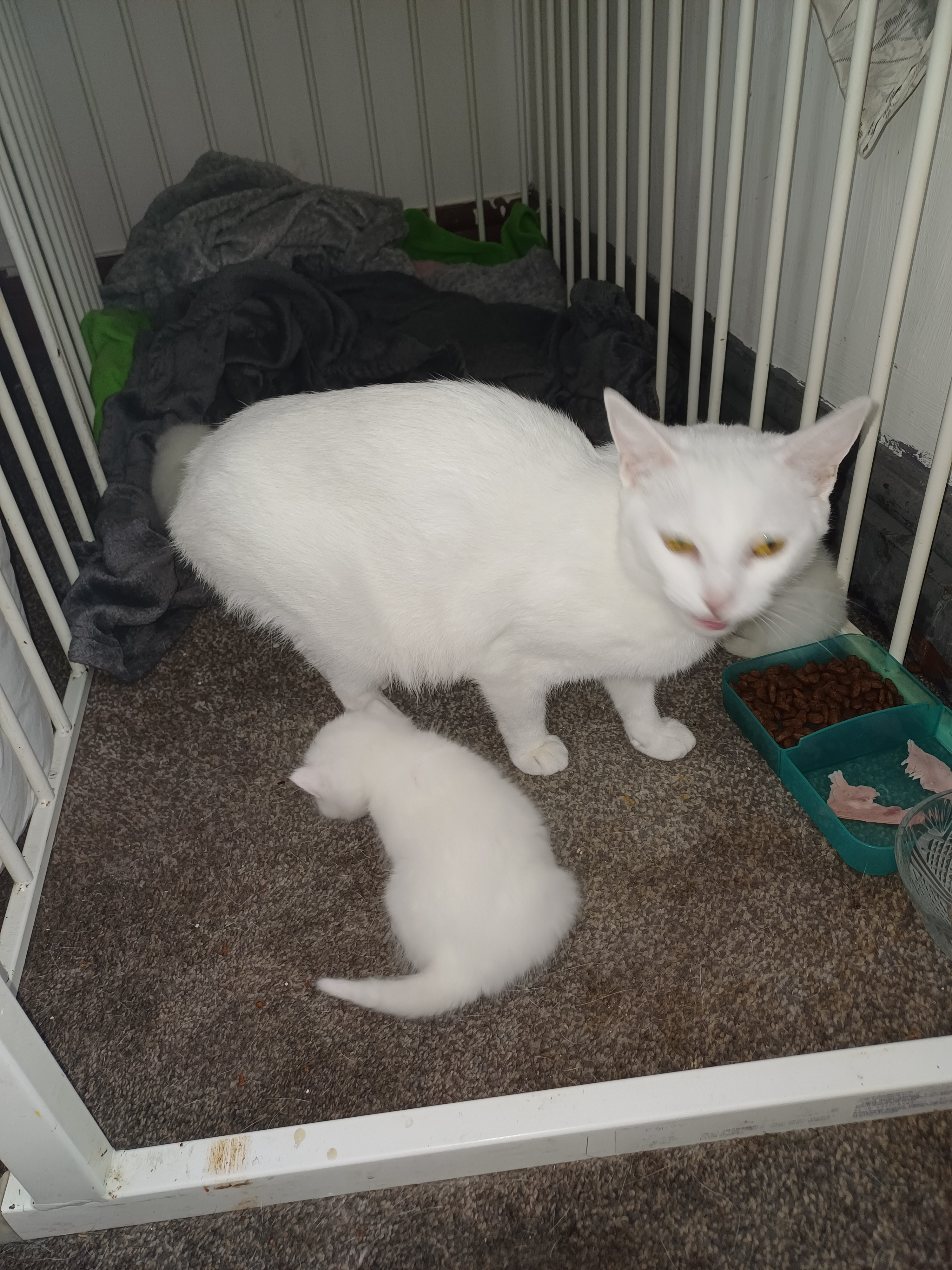 My beautiful russian white girl venus has had the most amazing babies that and now ready to reserve to leave in 2 weeks. There are 2 boys. 1 full white and 1 grey tabby. Also 2 girls with grey on head (may grow out to full white). Absolutely stunning and super soft fur. Used to all household noises Inc vacuum and other appliances. Cats, dogs and rabbits. Been handled daily by adults and children (from age 1 to 14). Nothing bothers the kittens and they are family ready. Eating, drinking and using litter tray