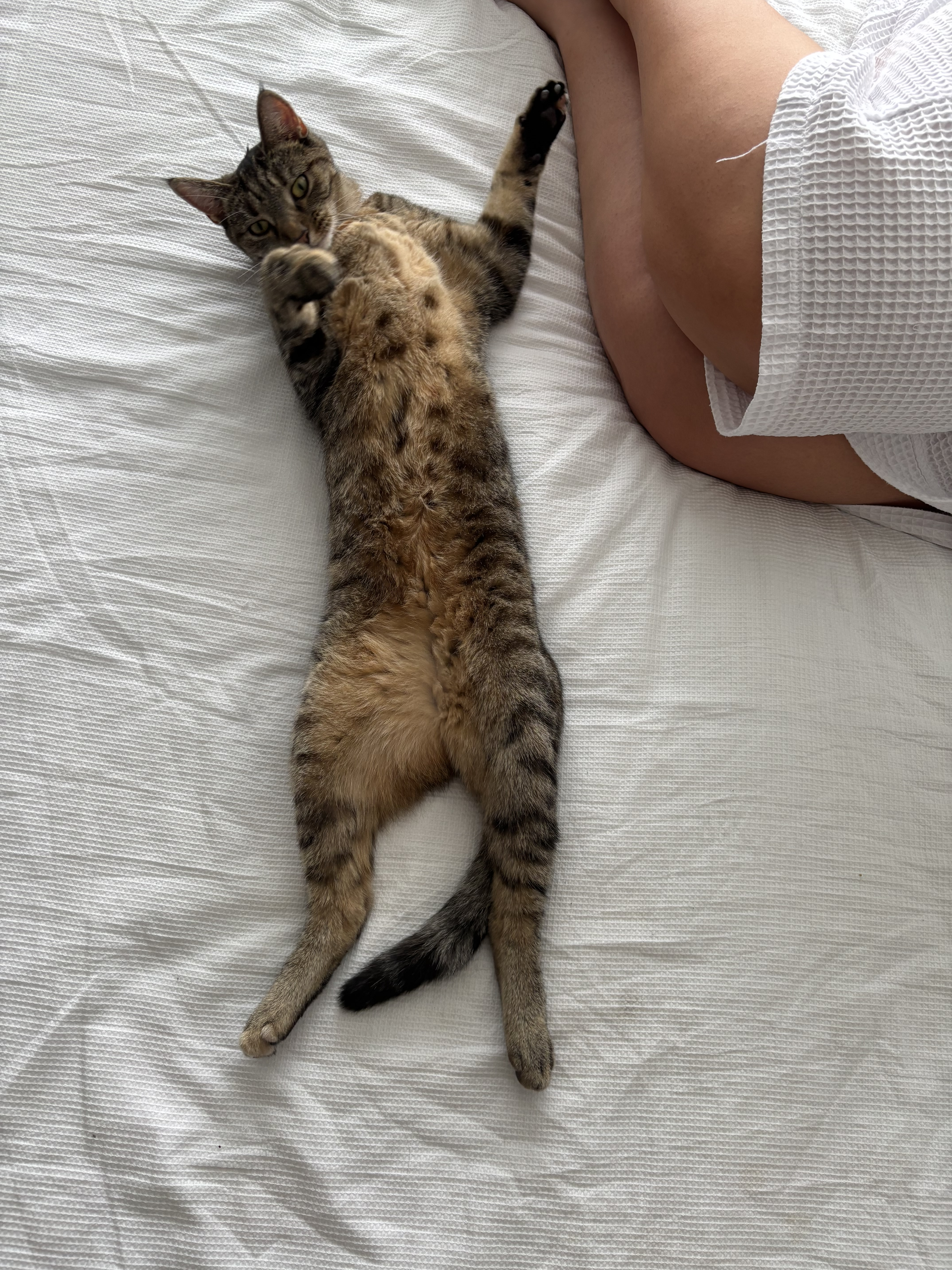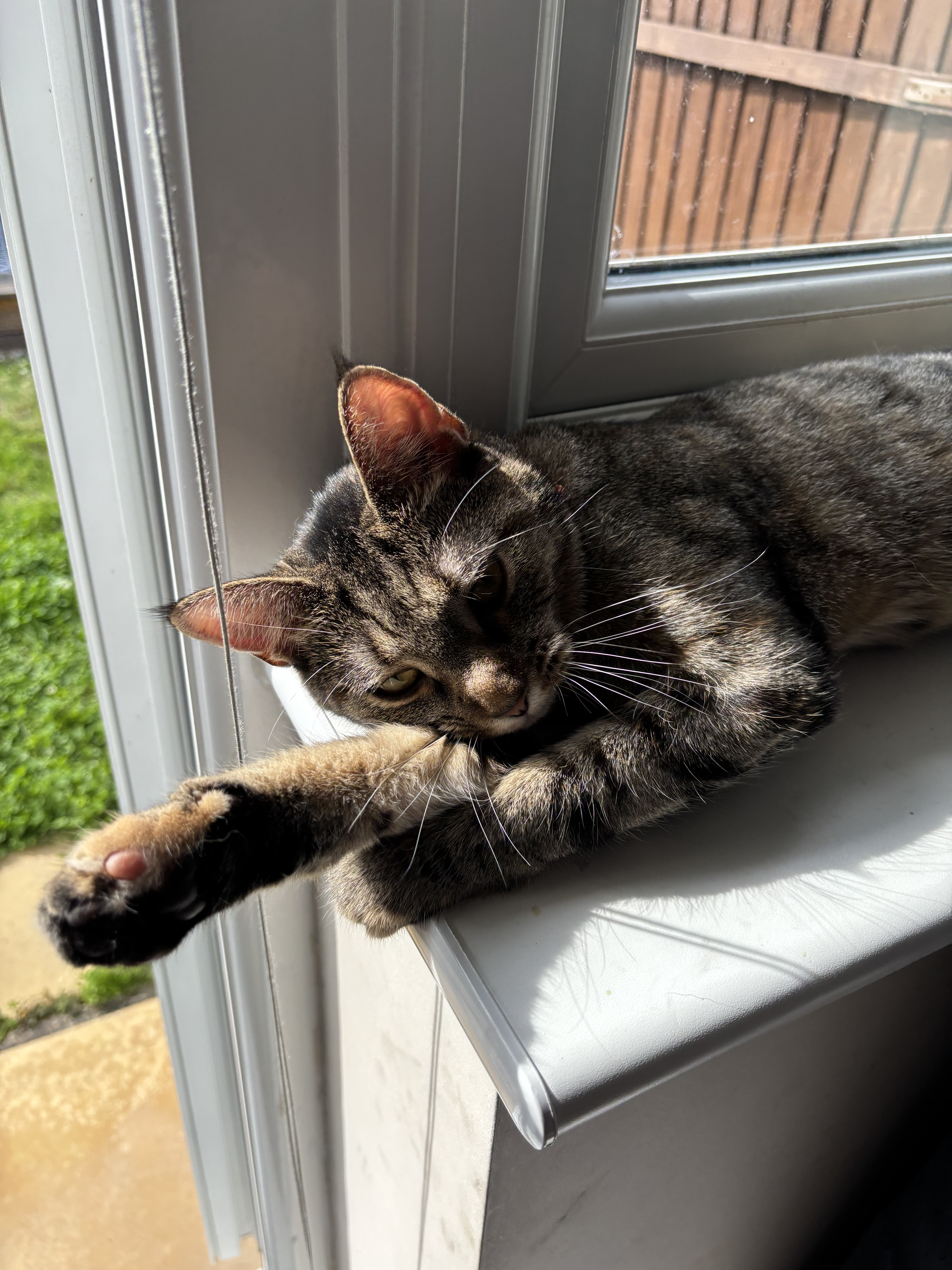 Lula is very energetic and playful, she loves the outdoors! She has lived with two other cats since birth, but definitely better suited to cats with a similar personality. She can be loving at times but is very selective, she’s not very cuddle as far as cats go, but she will keep you on your toes!
