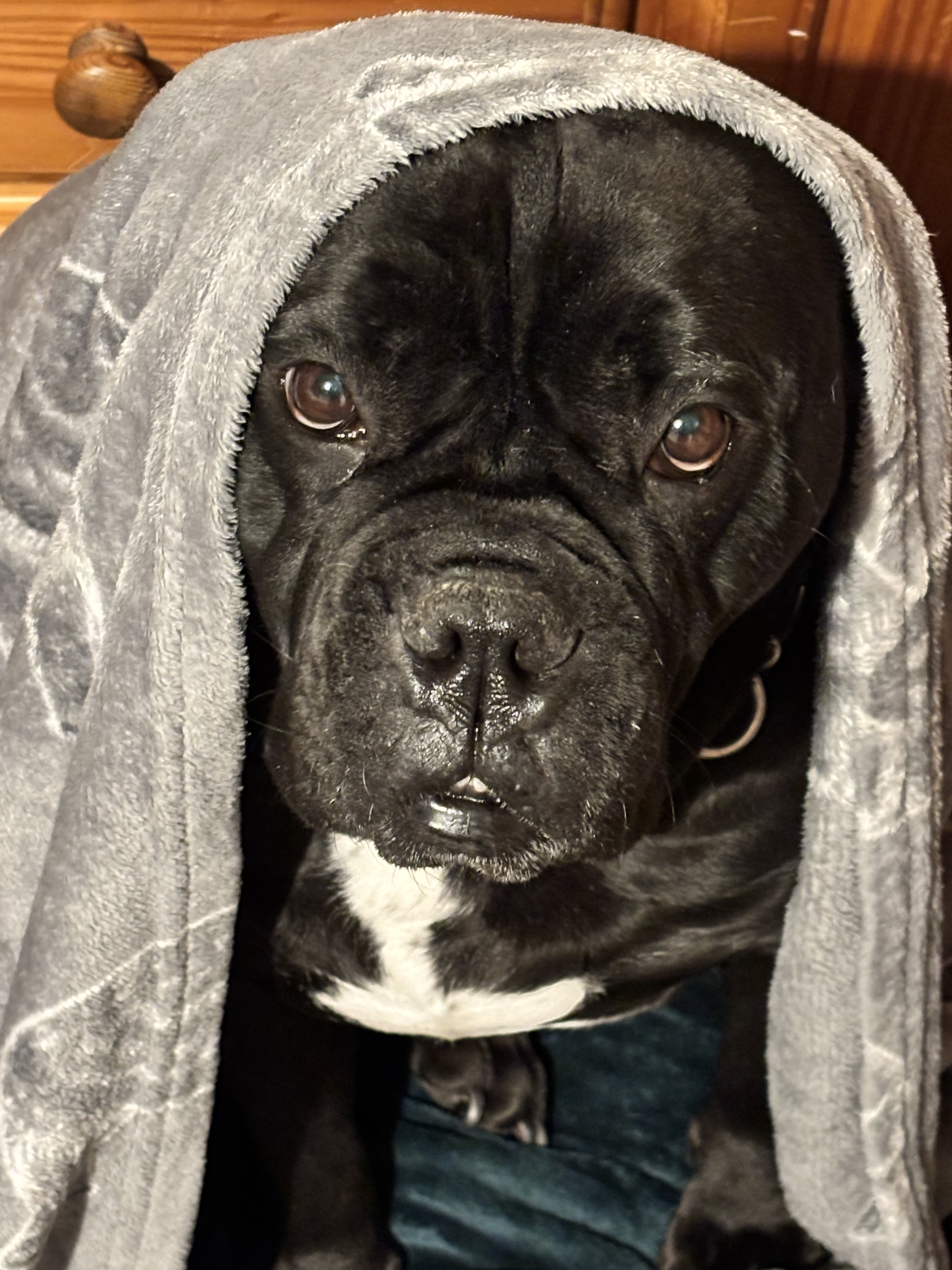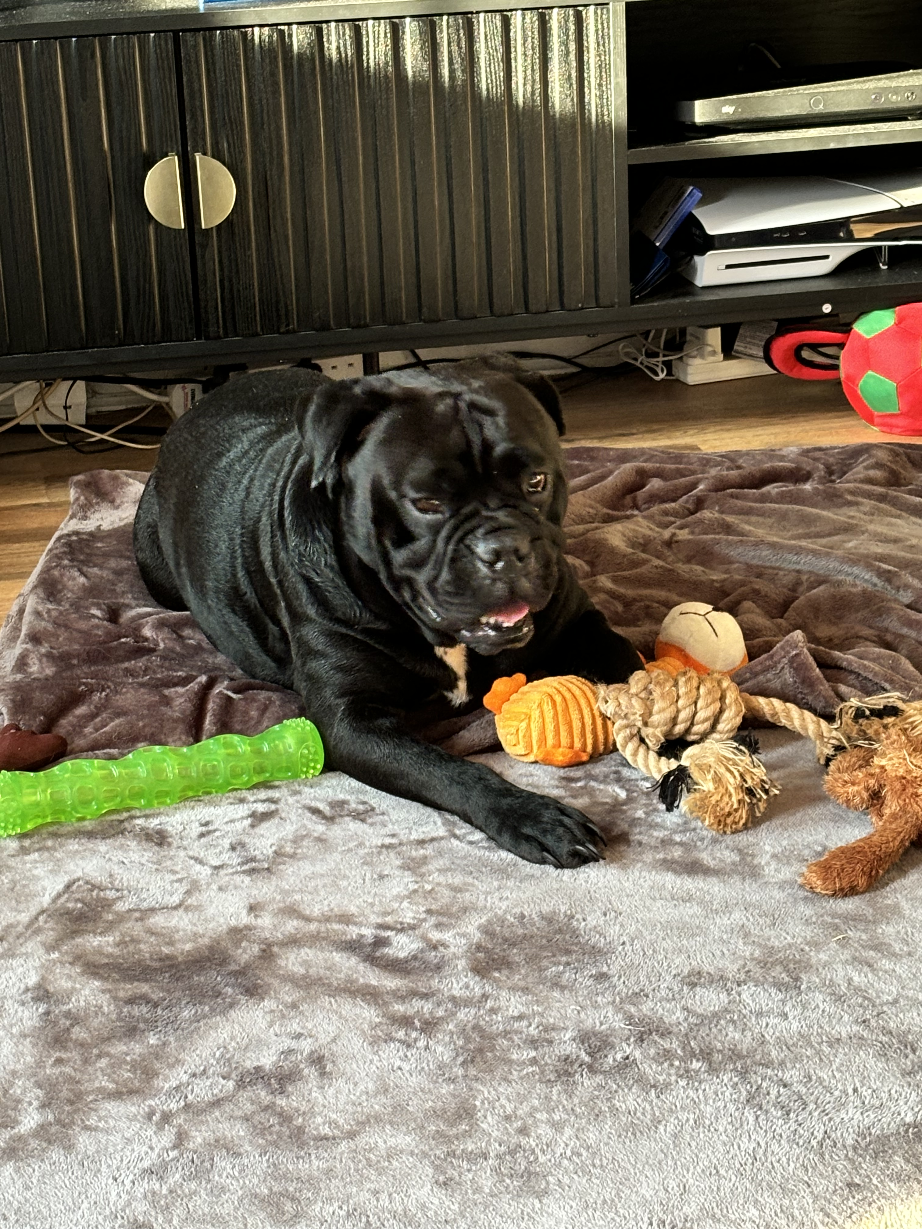 Nala is a big cuddle bug, loves walks, the car, a bath we will often find her just standing in the bath waiting for one , her babies (stuffed toys) and her food and treats. She is good on the lead but will pull for the first few minutes so we use a harness, she has selective hearing when off the lead so this is something we don’t do very often unless it’s an enclosed space . She is good with dogs and has lived with other dogs and cats and will take on the mother roll of a kitten. She is up to date with flea and worming treatment and booster injections are due in February. She hates having her paws touched so getting her claws clipped is an issue