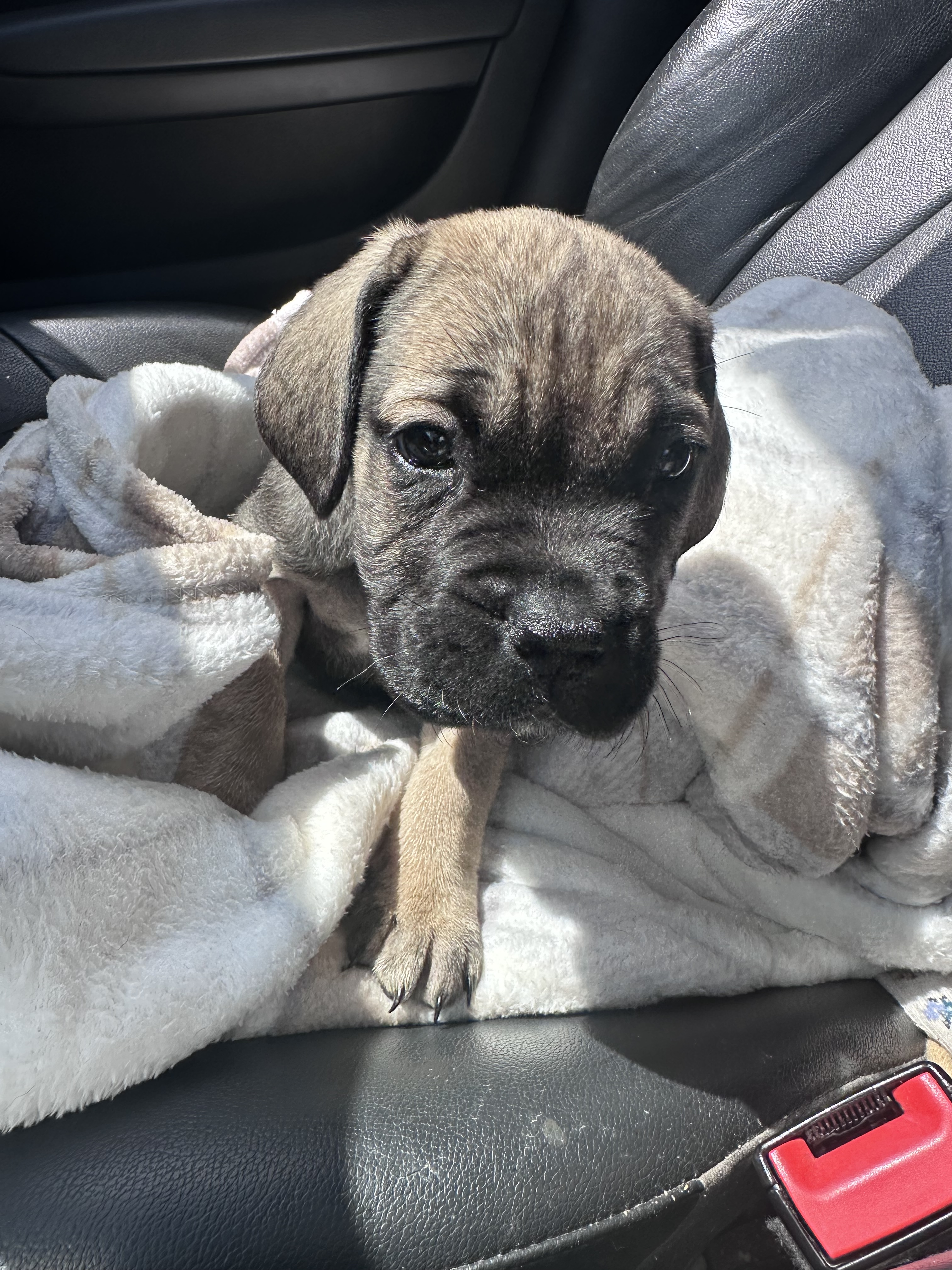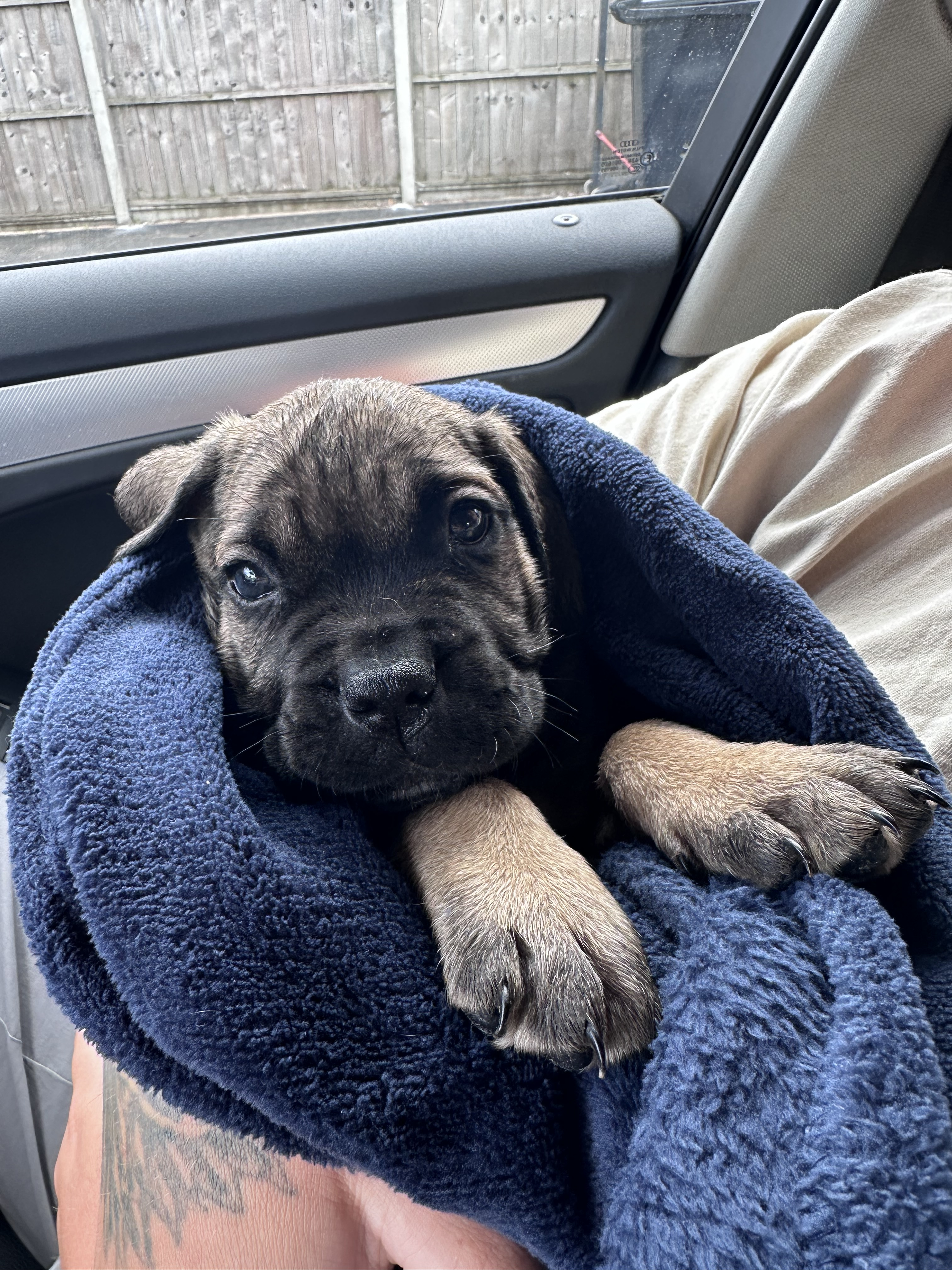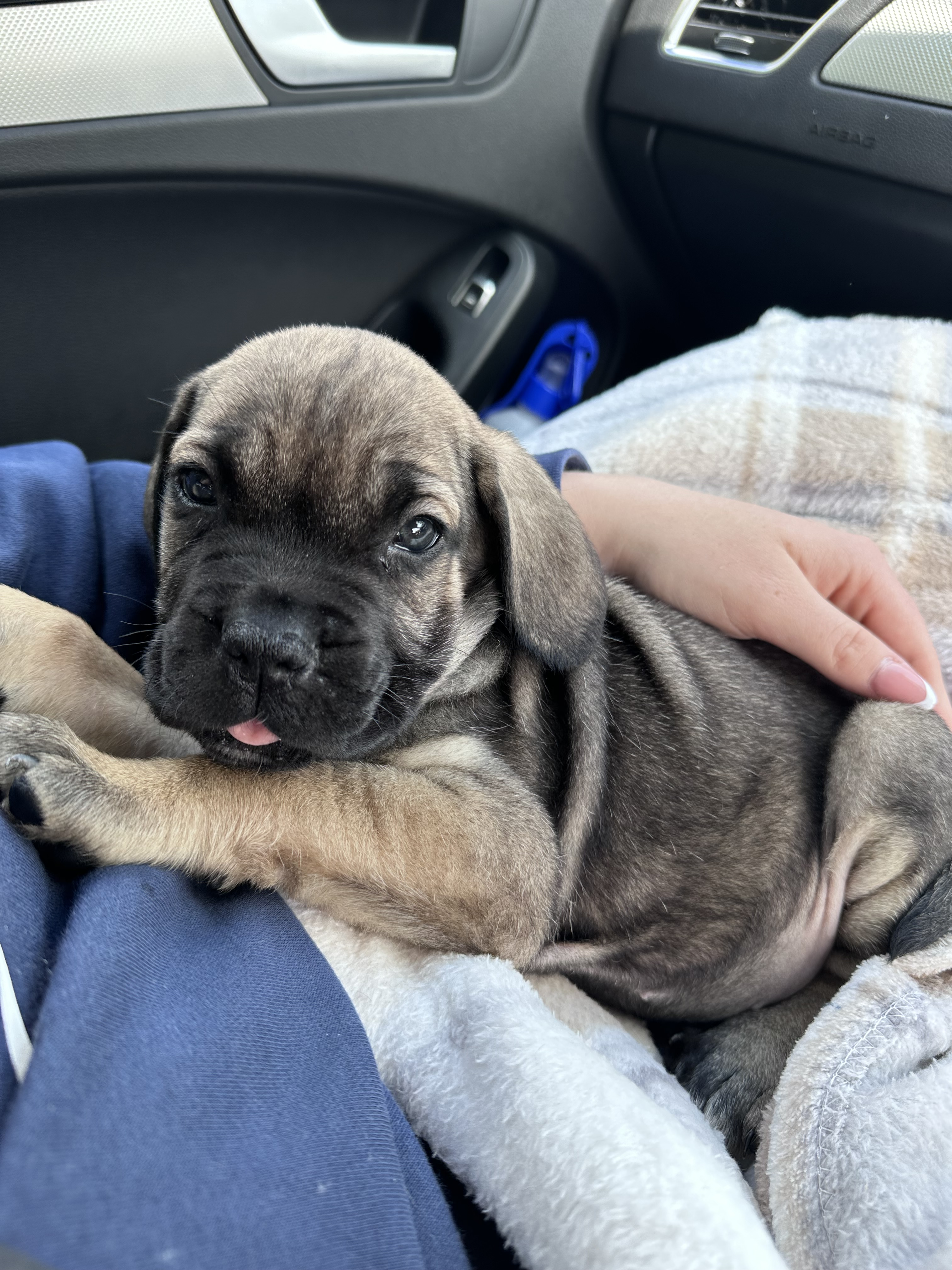Beautiful female cane corso pup. She knows Basic training such as sit, wait, paw, come and crate. However she picked those up within a few days - very easy to train. Toilet trained outside and crate trained overnight. The best puppy ever. She needs someone who has the time and can give her the attention she deserves.
