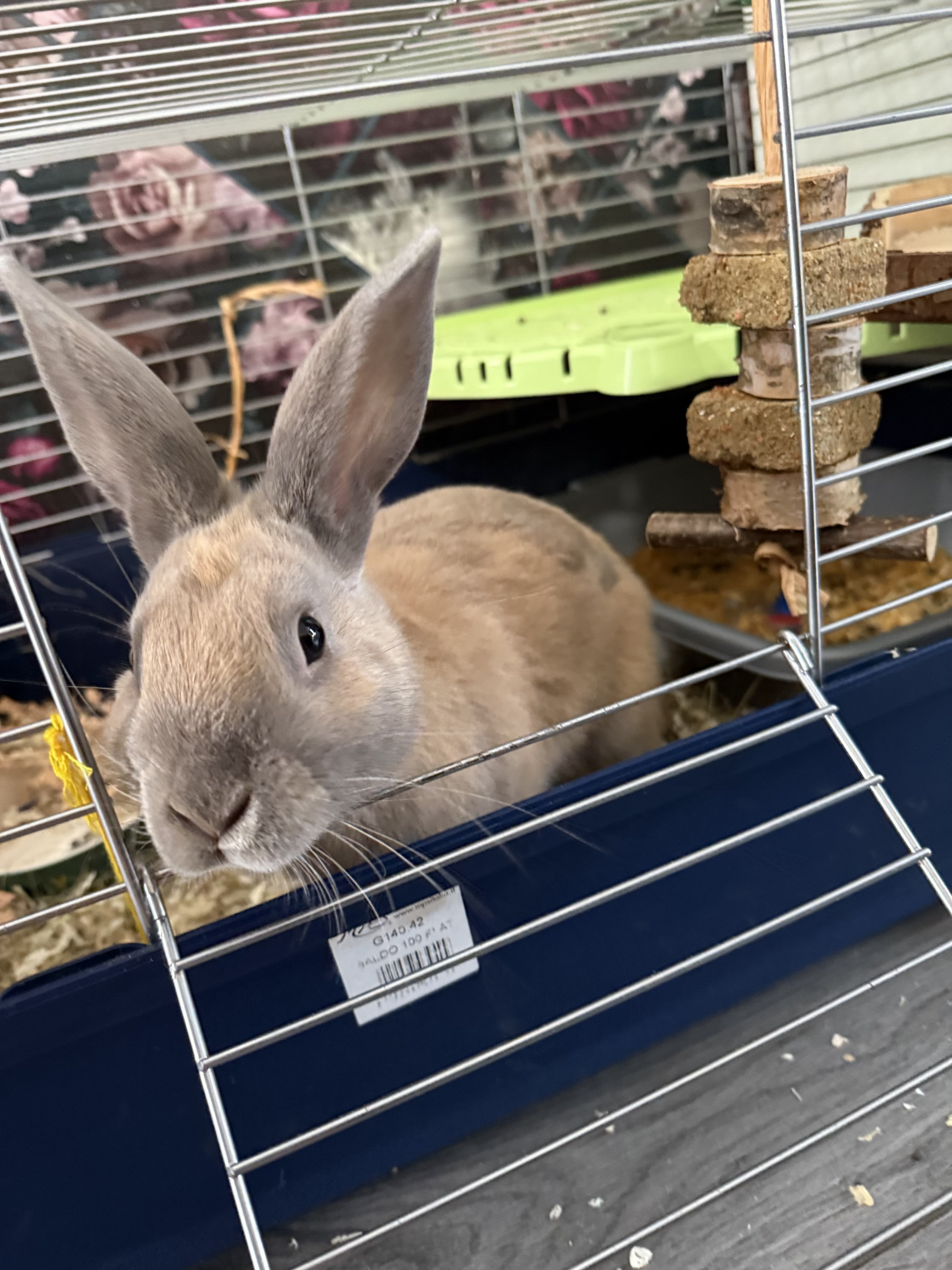 Sale of my lilac & cream male rabbit who is around 13/14 week's old! His name is thumper he is a very loving cuddly rabbit, he loves running around and playing with my 8 year old & equally loves jumping on your lap for a fuss. He likes to use a litter tray to wee in, and is a very clean boy! He's absolutely adorable but my two adult cats are scared off him and have stopped coming in the house so I've got to rehome him unfortunately. He loves playing with my two kittens! Full set up! - Large Rabbit cage, Bag of hay Half bag of bedding About 1.2kg of food Lots treats Litter tray Hay rack Toy's & chews Water bottle Food bowl Salt licks & vitamin lick Mini finger brush