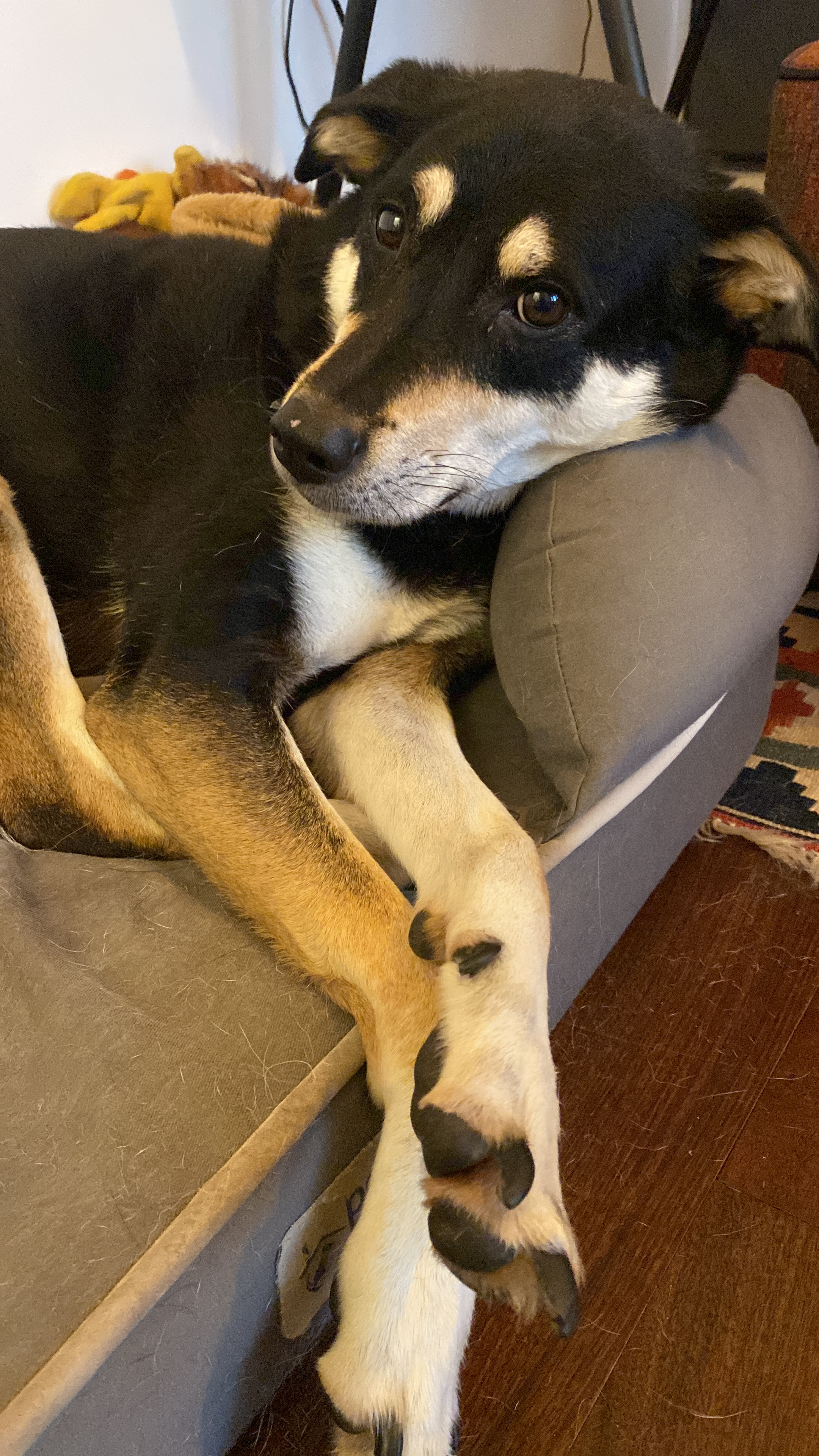 Aadi is a 9‑year‑old rescue from Nepal. I’ve had Aadi since puppyhood after I found her on the streets of Kathmandu. Aadi is an sweet dog who loves nothing more than stretching out in a sunny spot. She doesn’t require a large amount of exercise and is happiest relaxing at home. As a former street dog, Aadi does have some typical behaviours: she can be reactive around unfamiliar dogs and needs careful introductions to new people and environments. She has a naturally cautious temperament. In a stable home, however, she is incredibly sweet and gentle. We’re hoping to find someone who will take the time to understand her background and offer her a patient, loving environment. Aadi is spayed, fully vaccinated, microchipped.