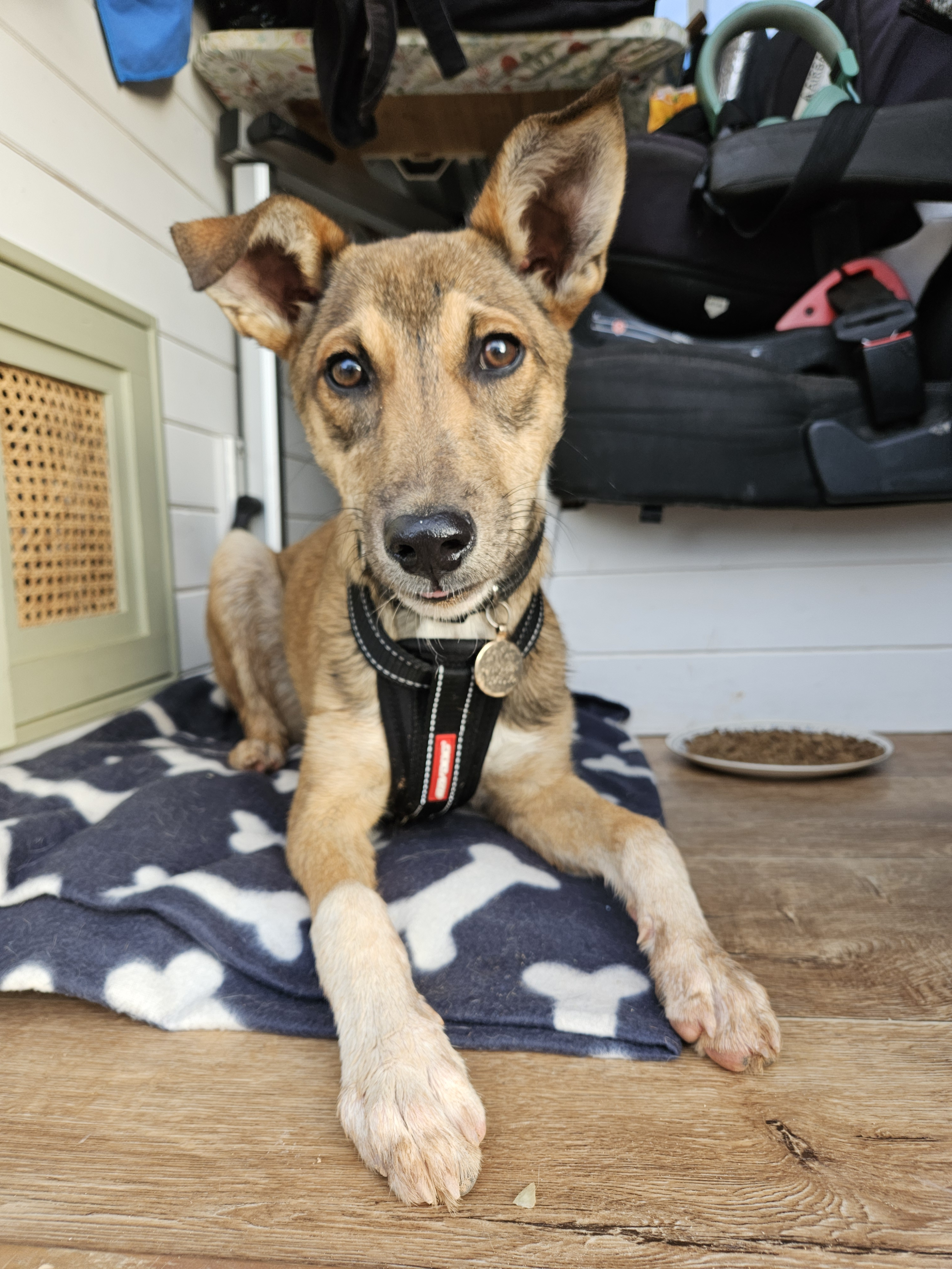 - Atlas was rescued by us from Morocco. The African country, Morocco, is facing a huge crisis for its stray dogs — thousands are suffering from disease, malnutrition, rabies, and abuse. The king has also announced that all strays should be killed before the 2026 World Cup. We have witnessed all of this first-hand and it is horrendous. That's why, when Atlas came to us for help in the mountains, we knew we had to rescue him. However, we live and travel full-time in a campervan with two kids and knew that this wasn't the life for Atlas. So we found a loving home for him once he returned to the UK. Unfortunately, the adoptees have dropped out and now we're stuck in a difficult position. Atlas has already grown from his puppy size and it's now becoming a real problem having him in the campervan. He needs space, comfort, and freedom. We can't give him all of that. He needs a loving home and to be with someone who can give him the love he deserves, take him on walks and let him run, give him space in their home, and let him be the sweet dog he is.