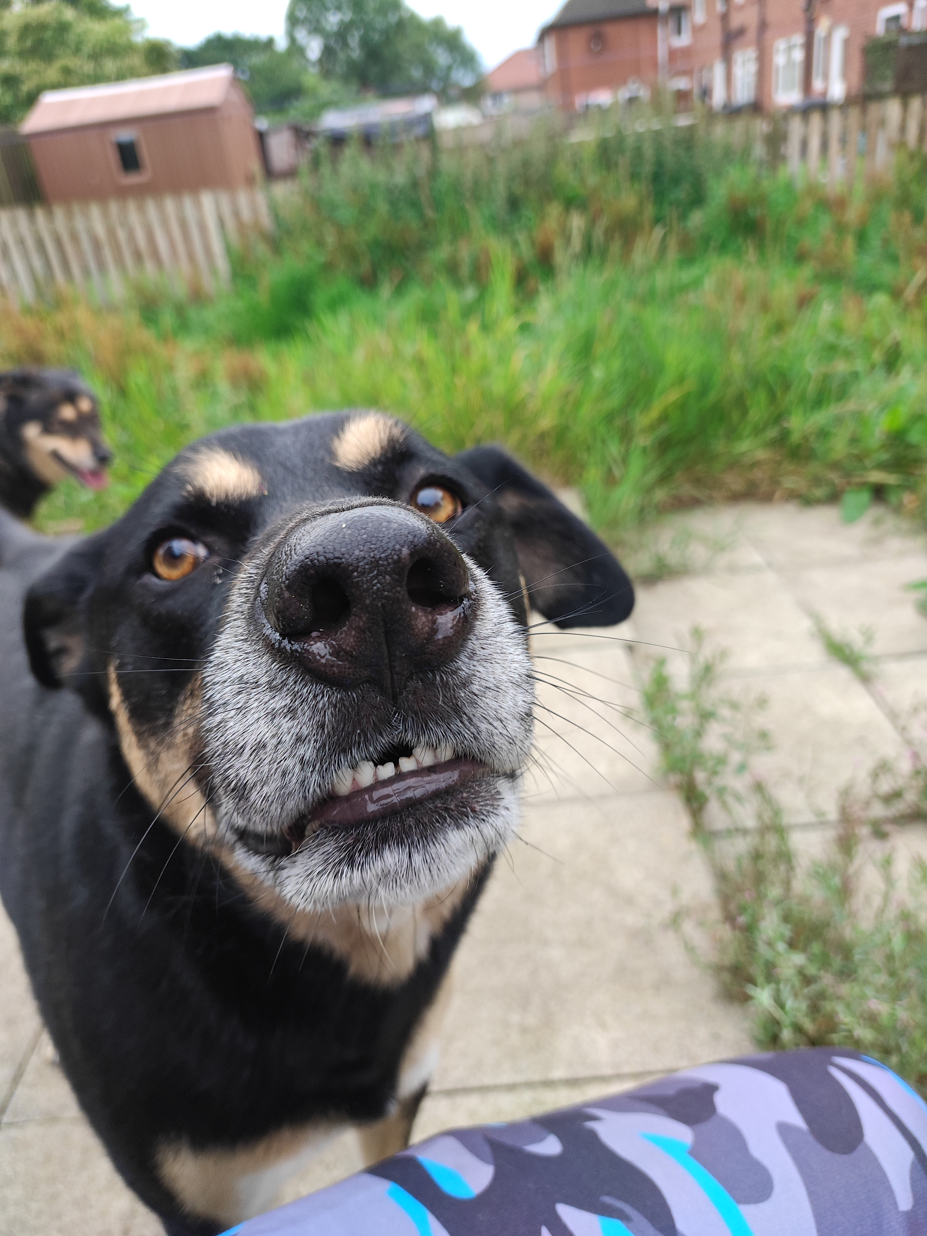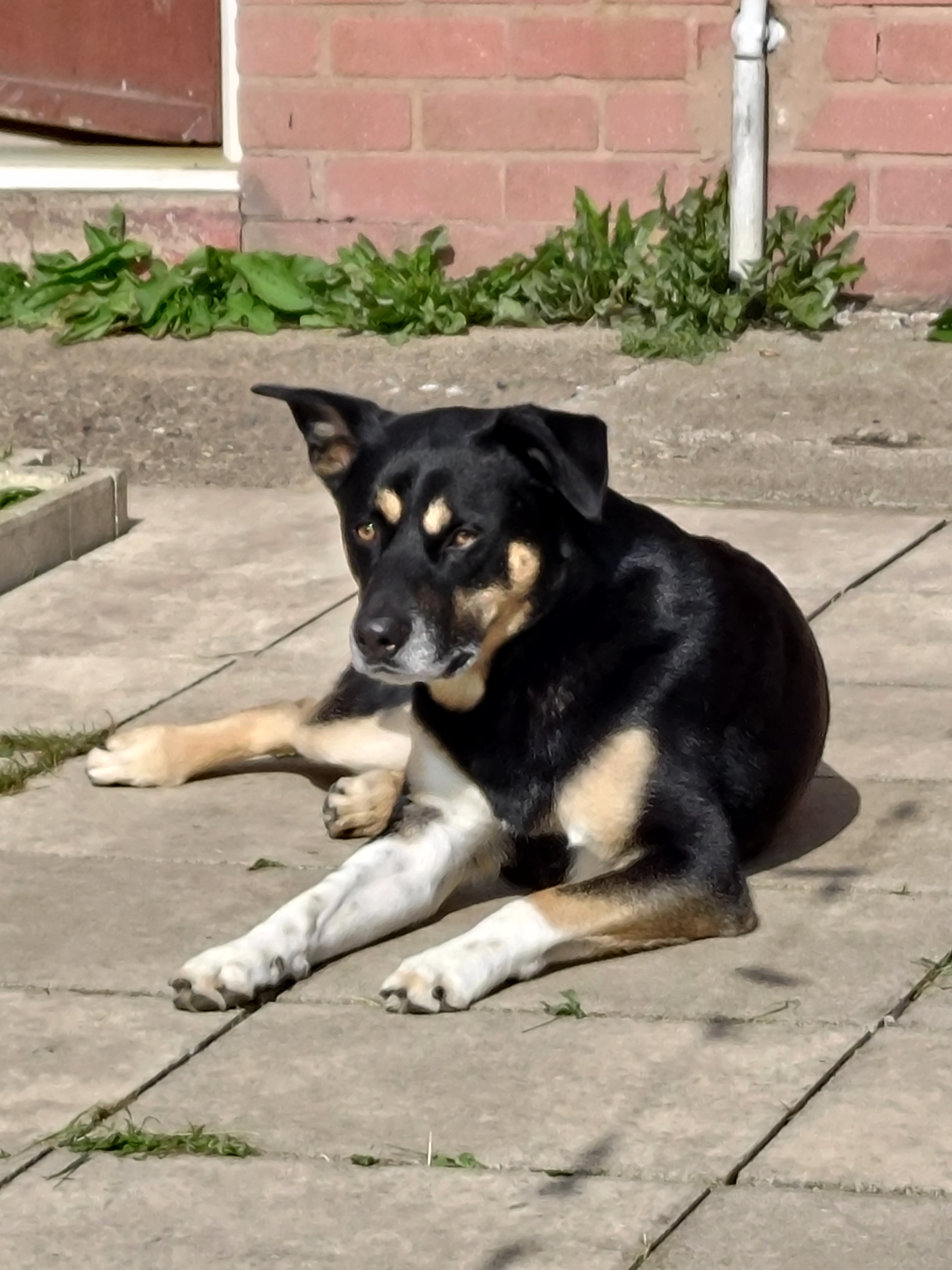 Balor is a lovable goof ball, he loves to be the centre of attention and playing in the garden. He loves a walk but sadly not had one in a long time due to human disabilities. He thinks he's a lap dog despite his size and will happily cuddle up on the couch and watch TV with anyone in the house.