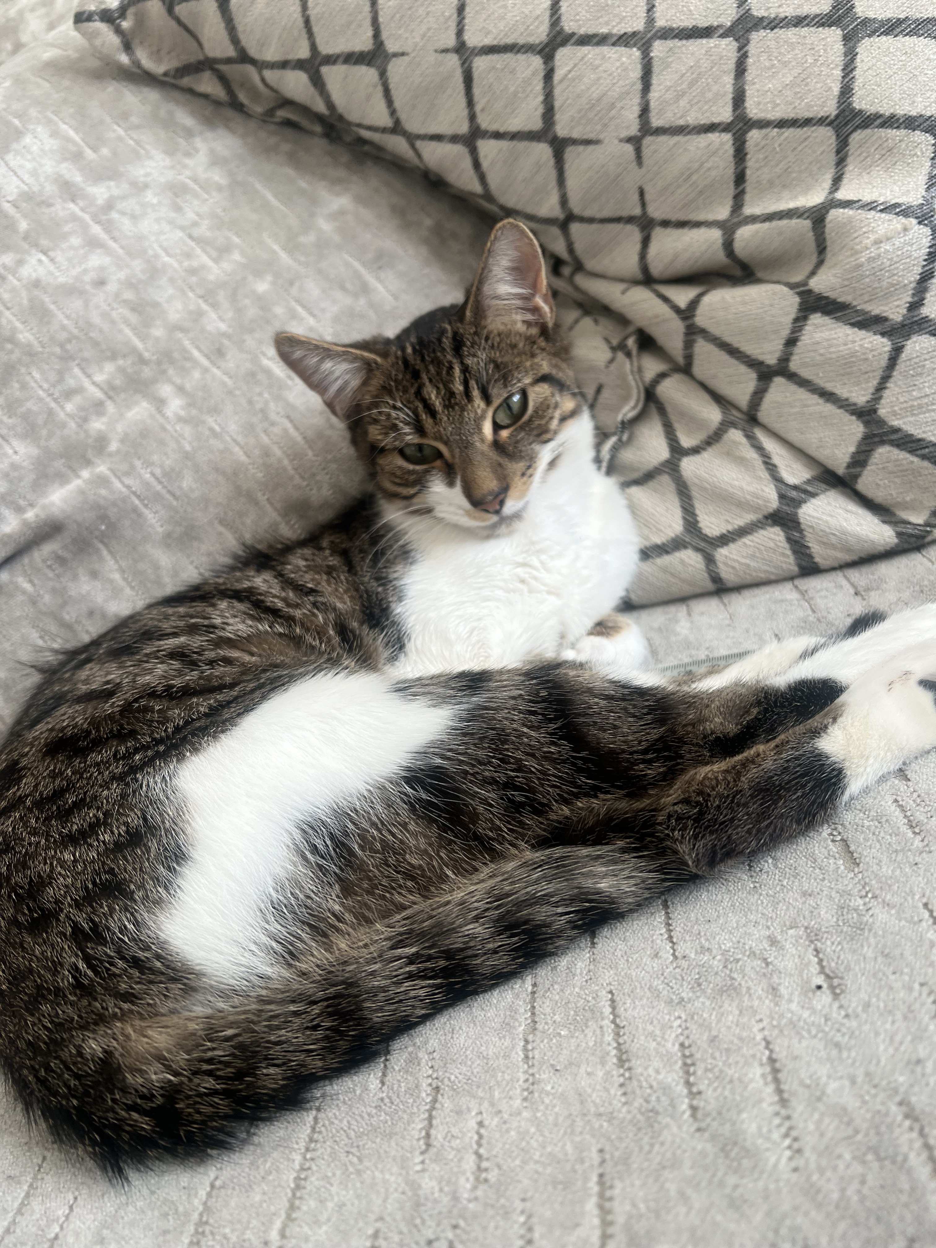 Energetic and playful. Never hides or hisses or attacks anyone just loves to play