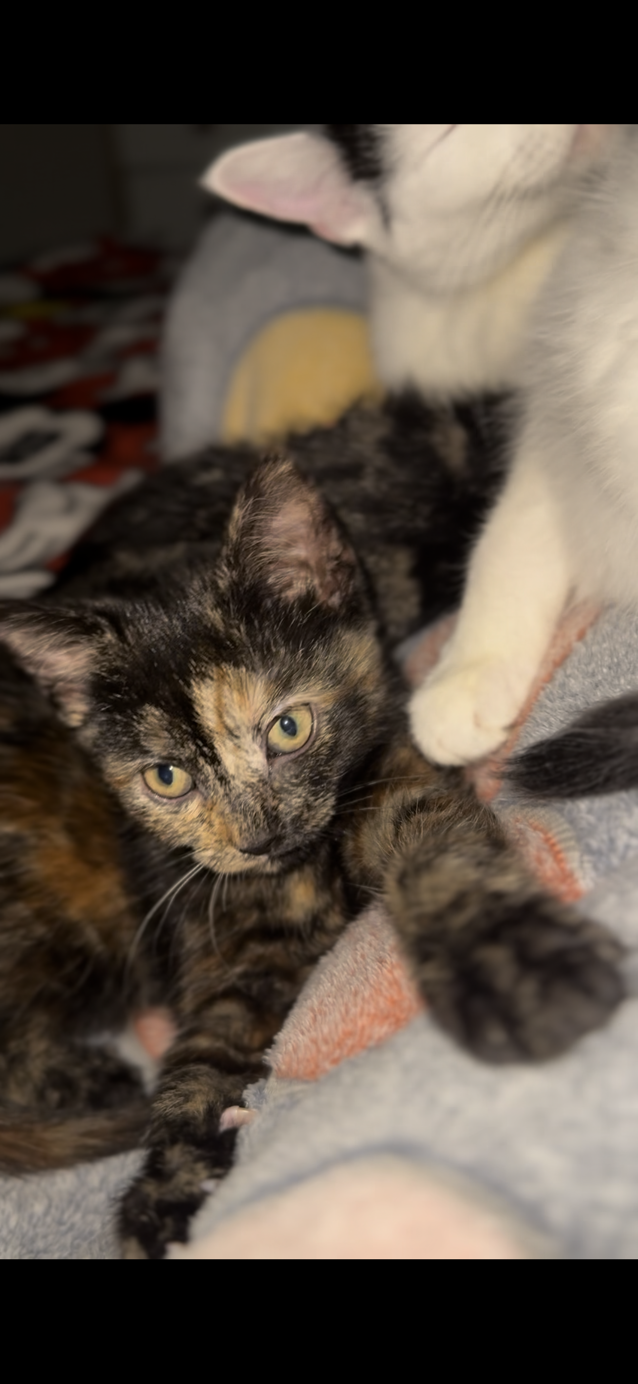 Brownie – Female Tortoiseshell Kitten • Breed: mom is Ragdoll cross and Dad is unknown • Age: 3 months • Sex: Female • Colour/Pattern: Brown & orange (Tortoiseshell) • Personality: Playful, energetic, sociable, loves to explore • Good with: Children and other pets (if introduced carefully) • Training: Litter trained • Health: Dewormed, not vaccinated yet • Raised in: Loving family home • Ideal household: A caring home with plenty of attention, playtime, and safe space to explore • Location: Southampton