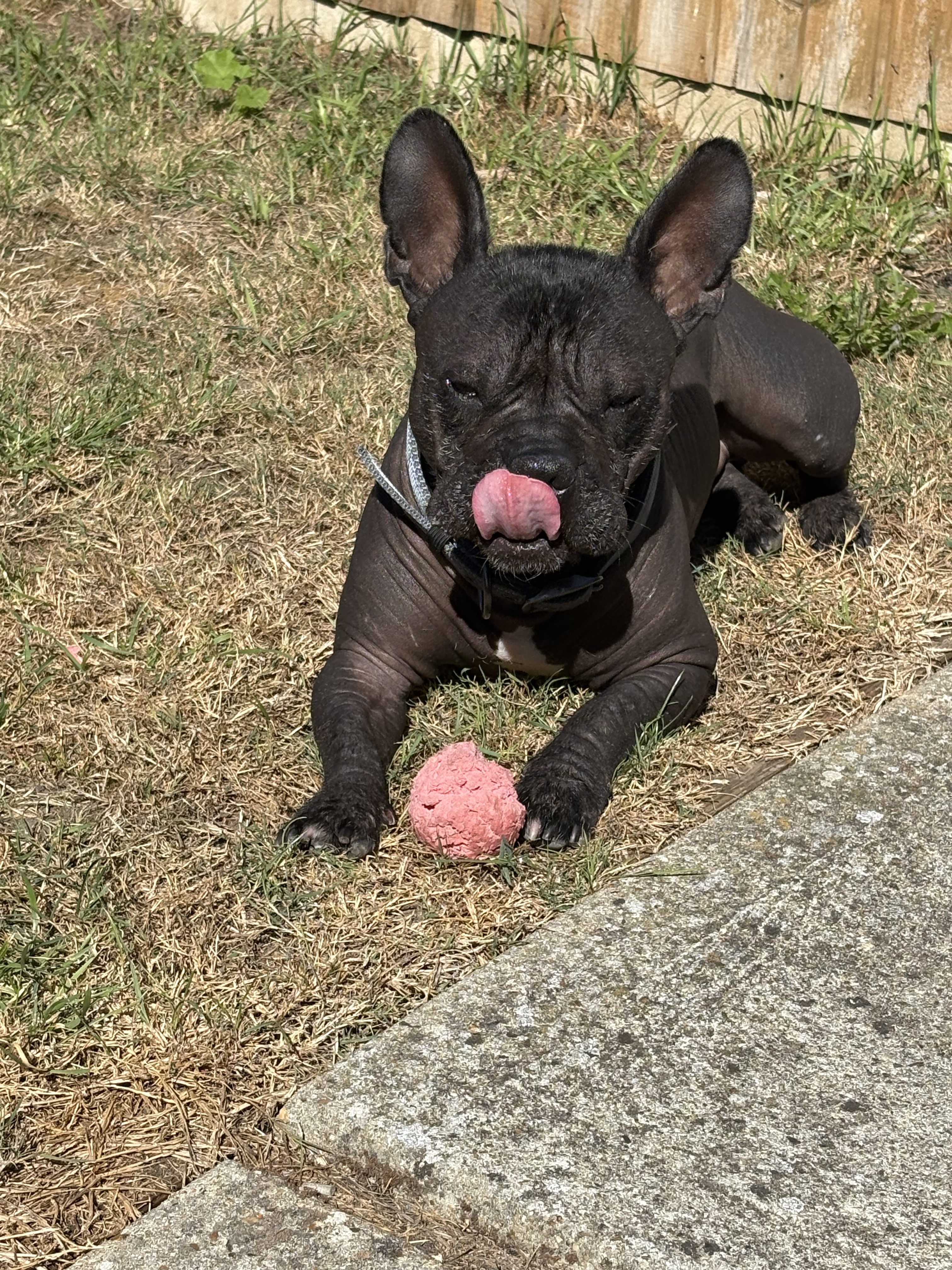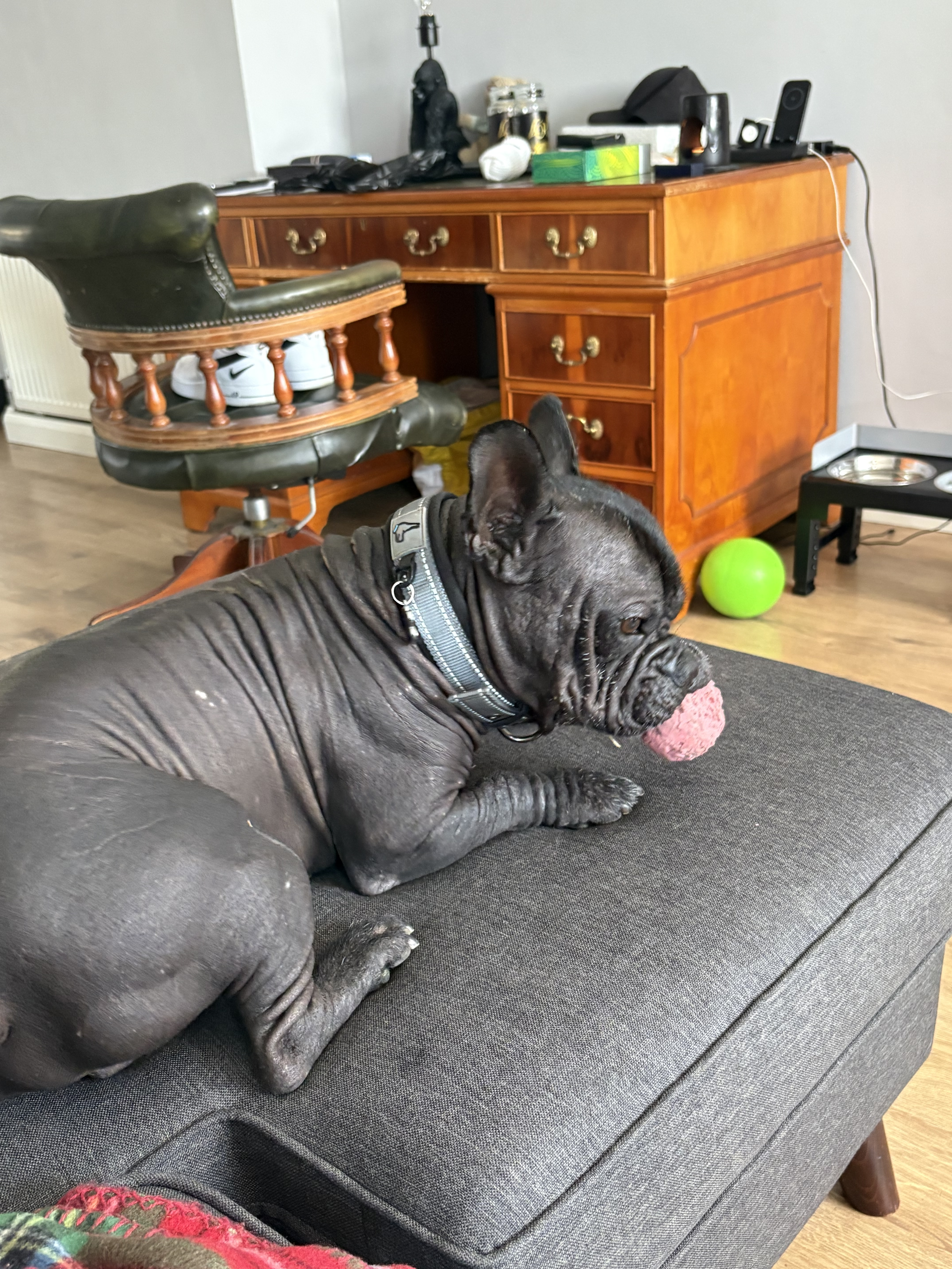 Camilo is a Hairless French Bulldog. He is super affectionate. Loves cuddles, play time, fetch, everything that he has company with. He lays in bed with you, he’ll snuggle into your legs on the sofa. He has so many quirks. He LOVES car journeys, Would definitely suit a driver. Honestly, never had a friend like him before. He has these expressions that has everyone love him. Everyone who sees him, wants him. We’re waiting for the perfect family. You’ll be blessed to have him in your life.