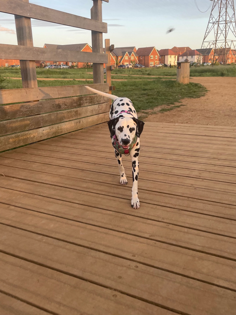 We have one beautiful 10 month old female pedigree Dalmatian We bred her and she found a wonderful forever family however their elderly dog was taken seriously unwell and they were no longer able to care for her. No fault of her own. She has a super sweet temperament. She is brilliant with children and other dogs. She is very well socialised in many settings. She is well trained off the lead and with her recall. She does need more on lead training however she is still a puppy and very responsive to training. She is crate trained during the night but she will also settle and sleep outside of the crate on the bedroom or living room floor on her bed. She eats well from a slow feeder bowl. She is currently eating Step Up Naturals Dry Adult dog food - Beef and Lamb or Chicken and Turkey. She’s in a great condition, with good muscle on her. Beautiful well kept coat, no dally rash present. She does the popular pretty dally smile when she is excited. Her litter mates are also thriving in their forever homes and we cannot wait for Daisy to have that again also. Daisy is a happy and very healthy 10 month old pup and we are super proud of how she’s come along. Vaccinations up to date. She had the L4 and DHP at 8 weeks old and 16 weeks old. She will need her annual boosters at the end of July. Worming and fleeing up to date.