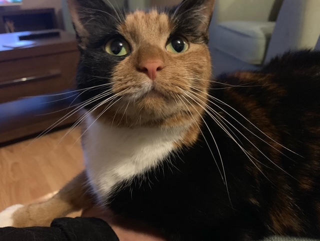 Loving girl cat she’s very scared with new people but warms easily and can be coerced with treats, I have a baby and she is good with her but not had her around children or other pets, I would suggest slow introduction. Apologies, my photos are not working. She loves cuddles and is happy being indoors as well as outdoors.
