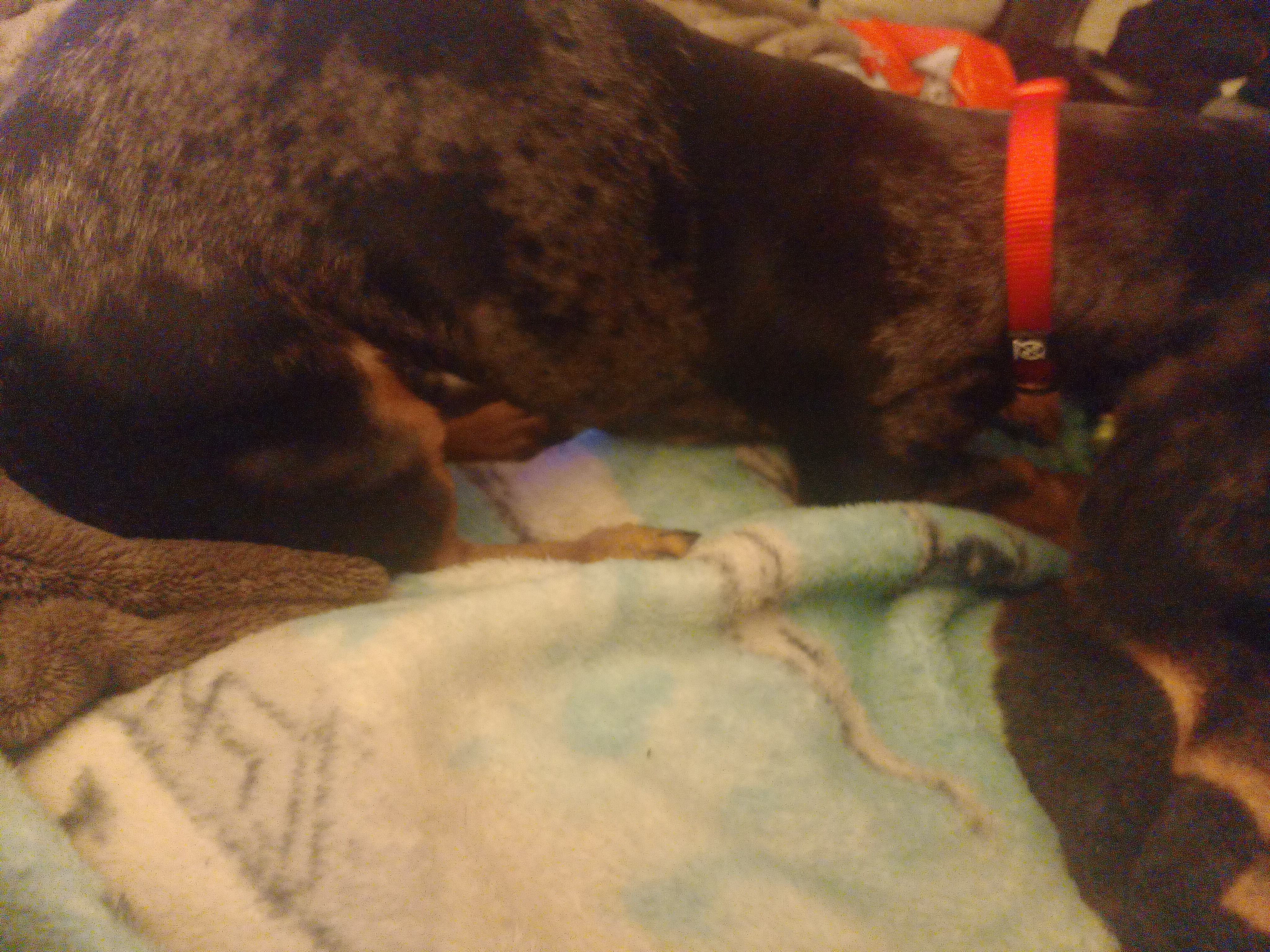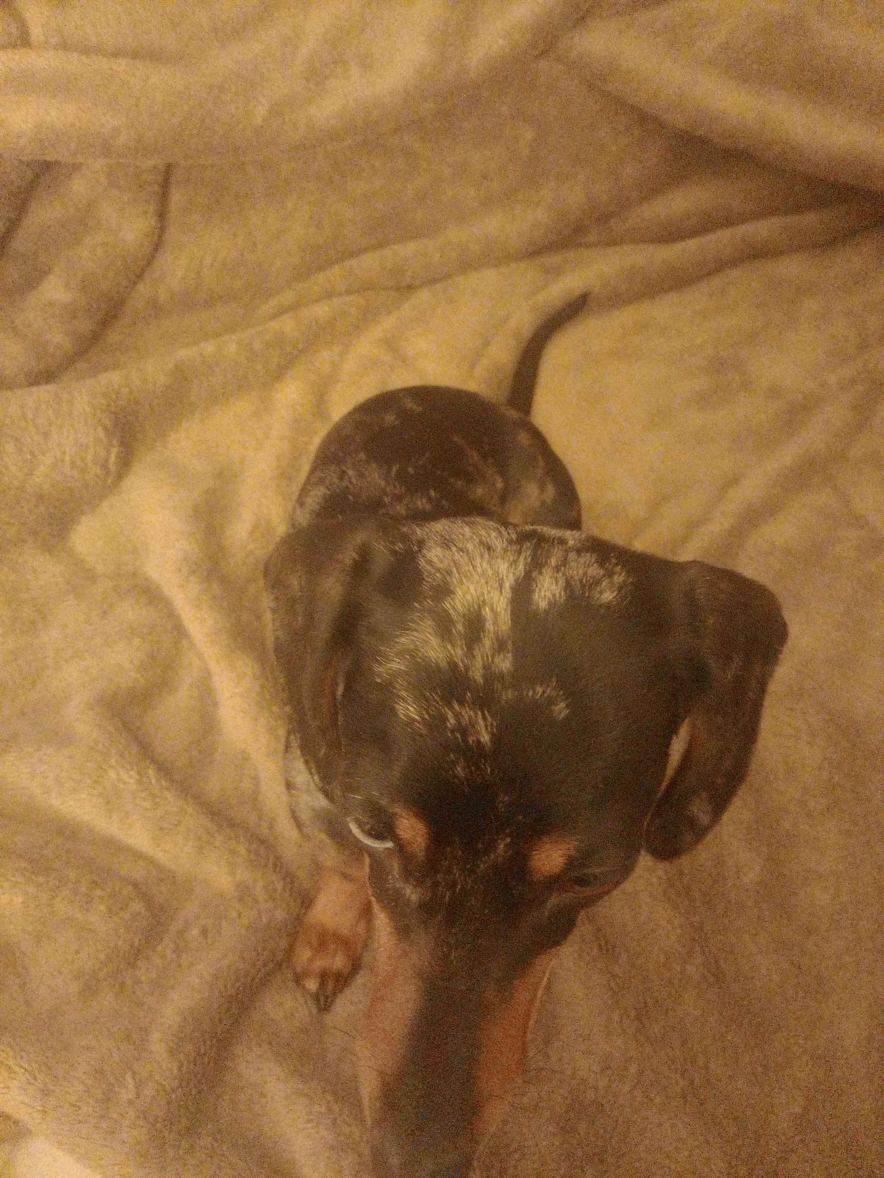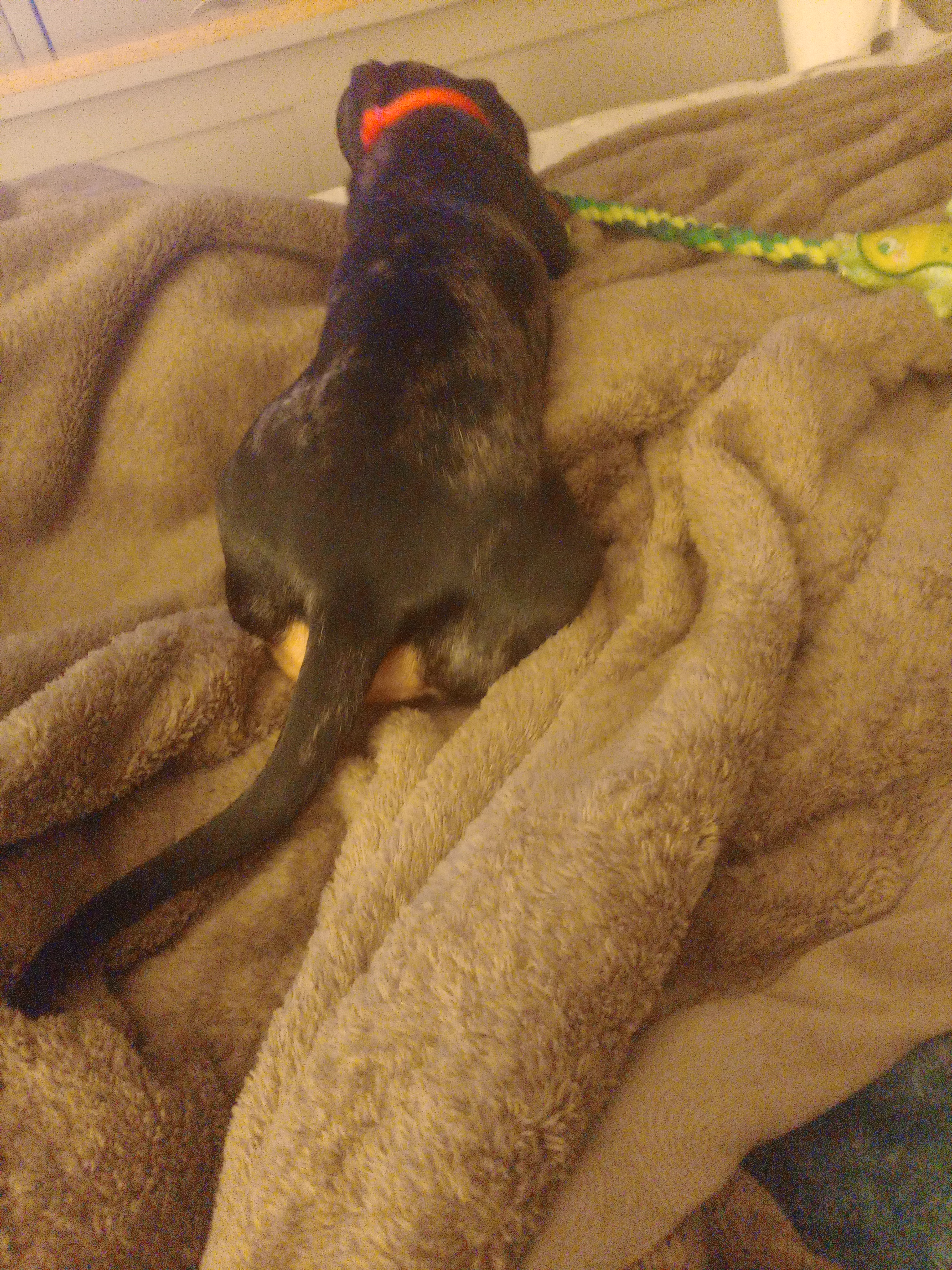 Dotty is black and tan with grey patches she is a lovely dog and loves to cuddle. I rescued her back in April.