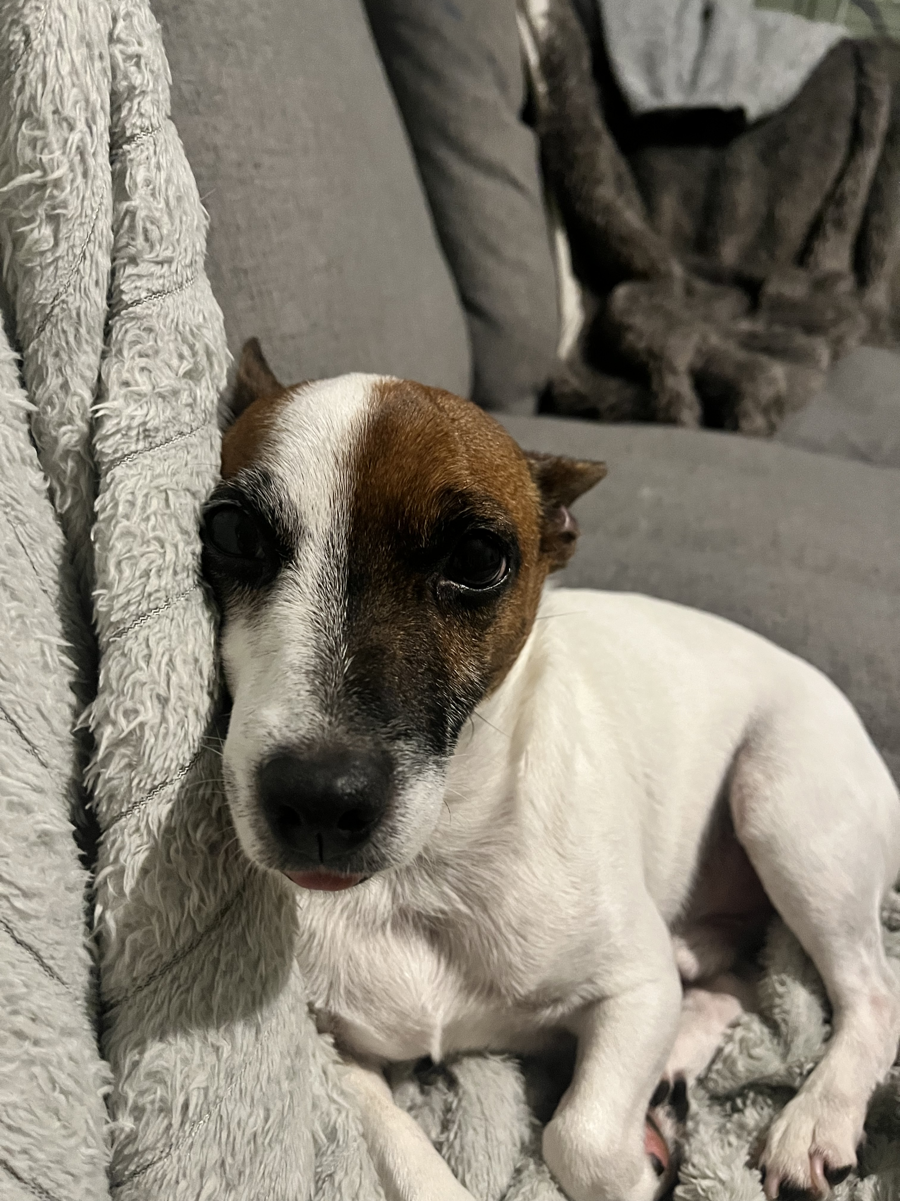 Freddy is a great boy he loves nothing more than to be on your lap or close to you , he loves sharing a nap in bed together , is always up for playing and loves his walks ! He does understand things like sit , down , out, toilet , he needs a garden as he wees a lot but doesn’t have accidents when you’re not there , access to the outside is needed; he will need toilet training to let you know he needs a wee , but letting him out regularly and doing the right training shouldn’t take long or be difficult as he’s a cleaver boy I just haven’t had him long and unfortunately didn’t have the time as been dealing with other things . He is friendly with other dogs , I found he gets on with males better and is a bit intimidated by females but isn’t aggressive to either , he has recall and listens to his name extremely well, but not off lead if there’s other dogs he’s too interested in them to listen , so would need training on that if required , 2 walks or 1 long walk is fine, he’s scared of cars and doesn’t like walking on main roads , he’s been vet checked but needs jabs I’d imagine , but all in all he’s a great dog proper companion and would be a great man’s best friend for sure !