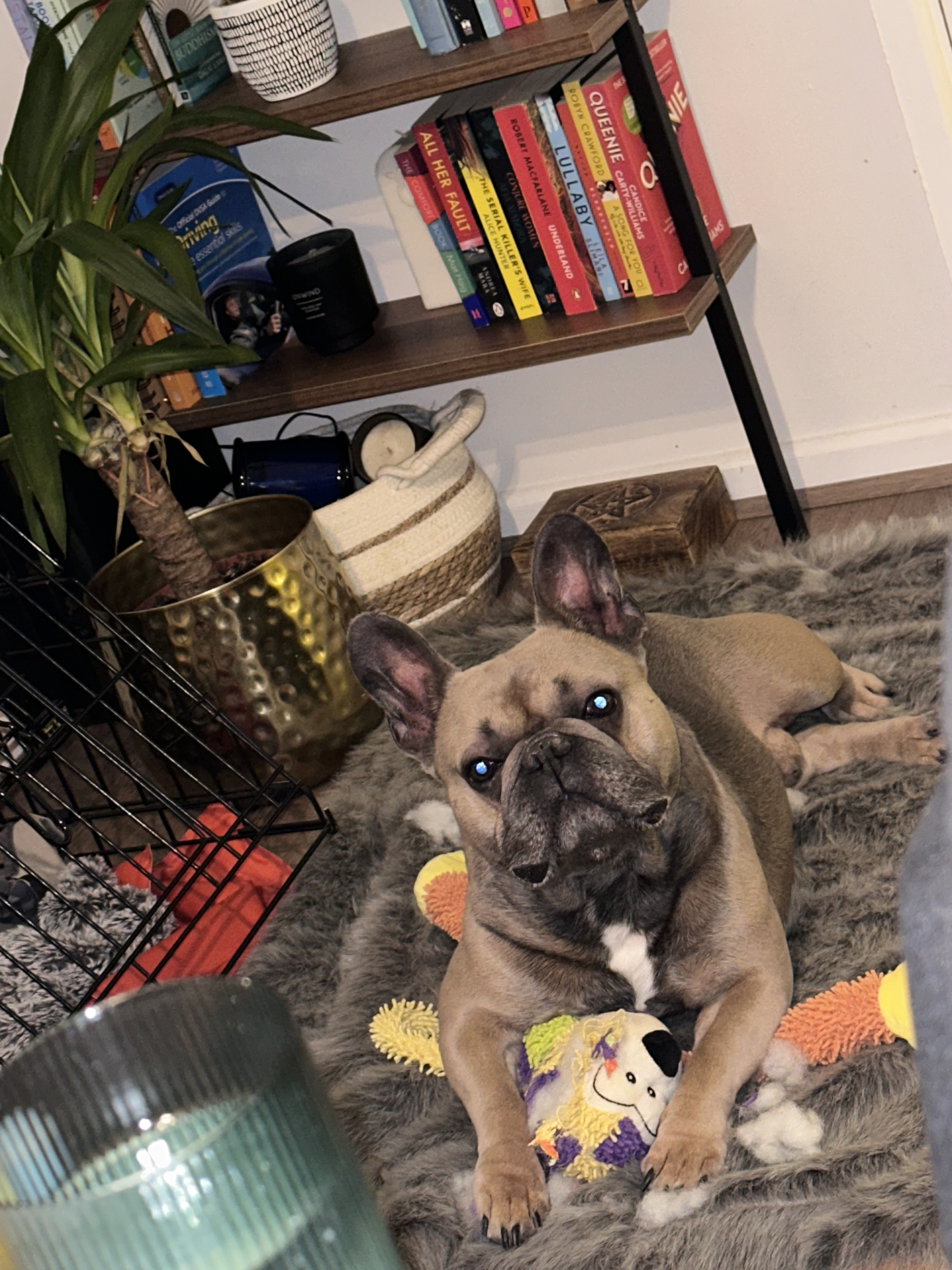 Lewi is a calm, loving boy. He loves his sleep. He loves he’d rubs and he loves his soft furnishings and blankets. He is crate trained and will take himself to his crate for his “me time”. He is quiet, he never barks just snores a lot. He does it like cats and he is nervous around other dogs. He can pull on walks and loves to pee and poop on everything. He is funny and he is not dopey.