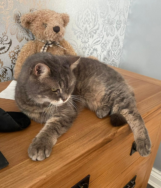 She is a beautiful cat, very laid back, sleeps a lot as she is getting on a bit but still very bright and spritely! She loves to be scratched on her head and stroked especially first thing in the morning and in the evening, whenever we are sitting down! She is very healthy, she has never required a single visit to the vet except for when she was neutered as a kitten, she is extremely clean and uses a a litter tray to do her business, she has never made any mess within the house! She is a very happy cat and only asks for love and cuddles!