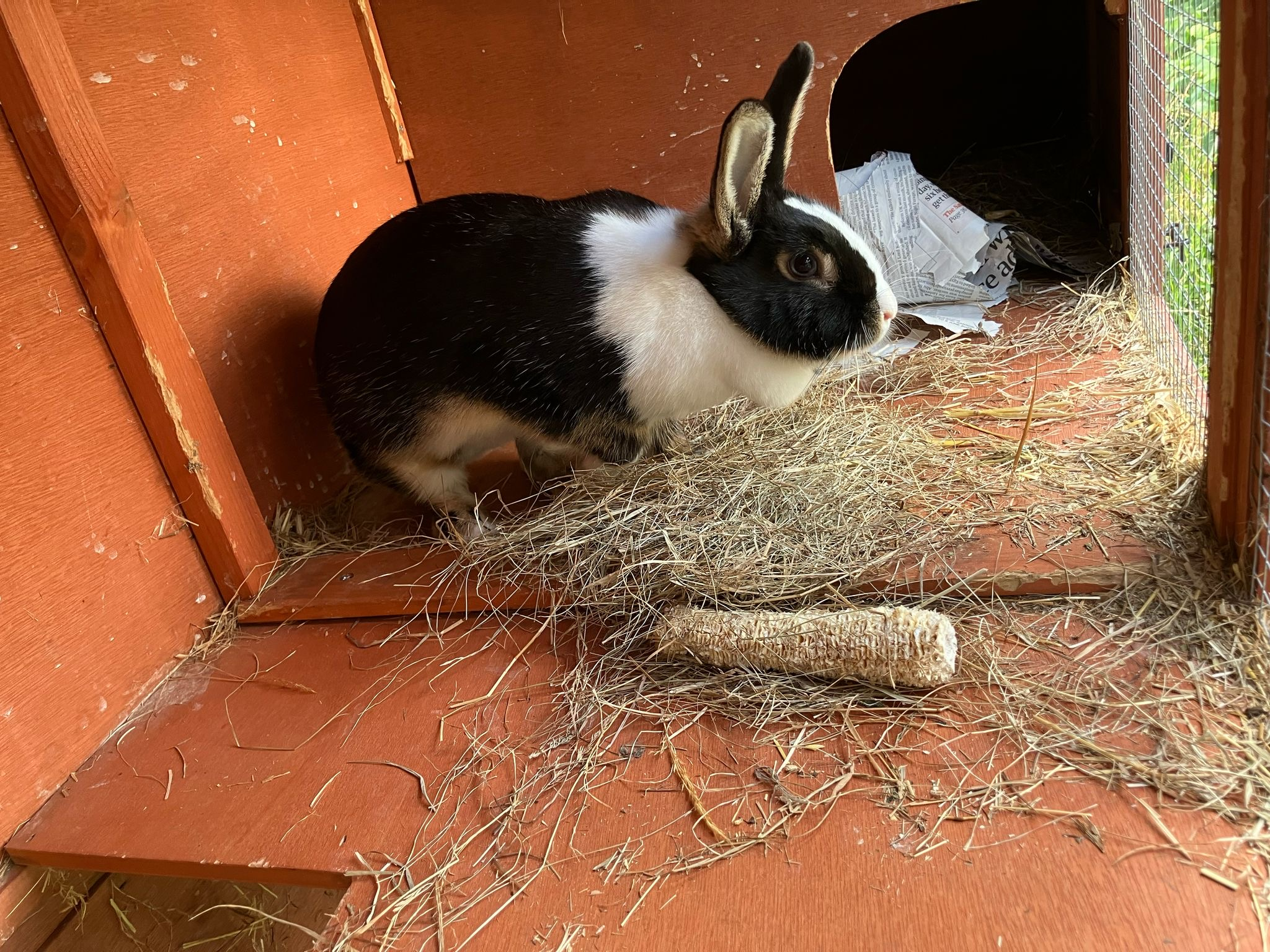 Mochi is an adult female Netherland Dwarf, not neutered but fully vaccinated. She is OK alone but used to be one of a pair. She currently lives in an outdoor hutch but we take her indoors when it is below freezing outdoors..