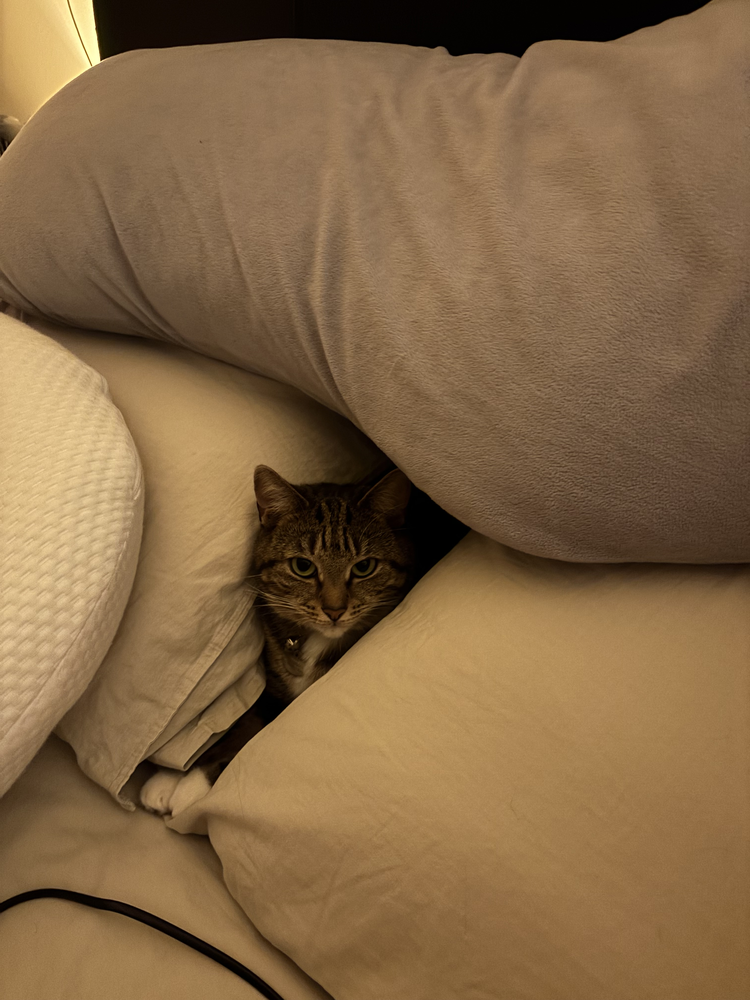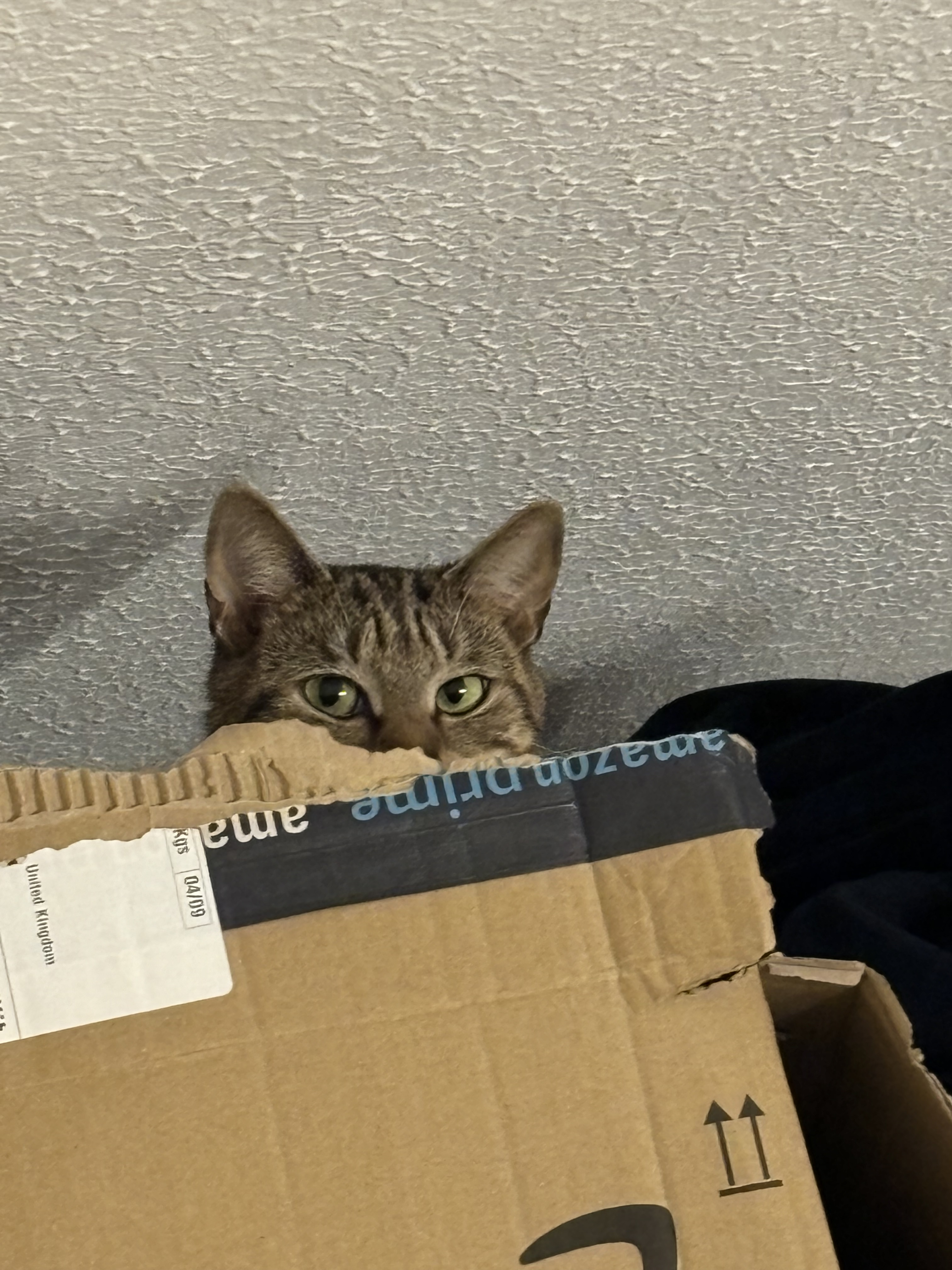 Nova LOVES attention, perhaps one of the clingiest cats you’ll ever meet. She is so loving and loves a cuddle! She loves being cosy at home and will always come up to you for a stroke. She gets on with everyone although she tends to be sassy with other cats if she doesn’t want to play. She also has an obsession with cardboard boxes!