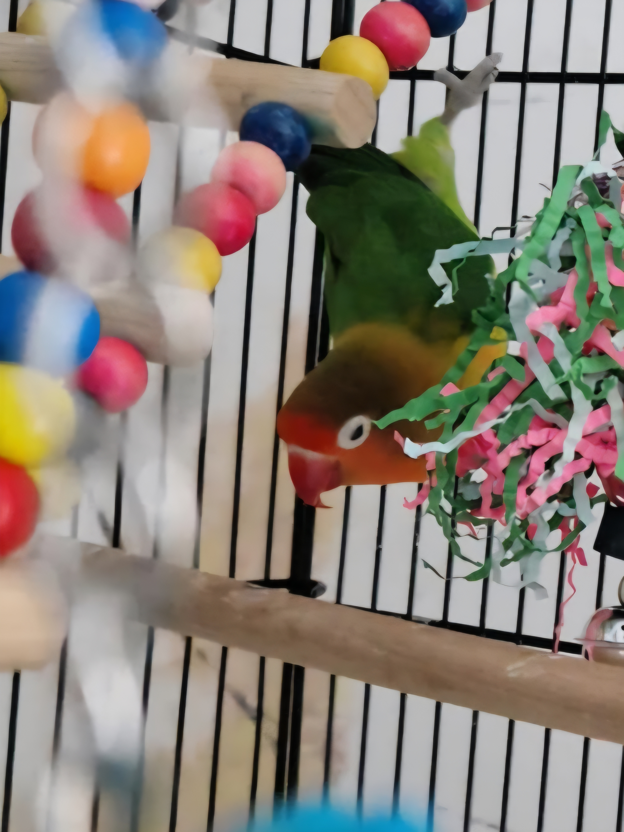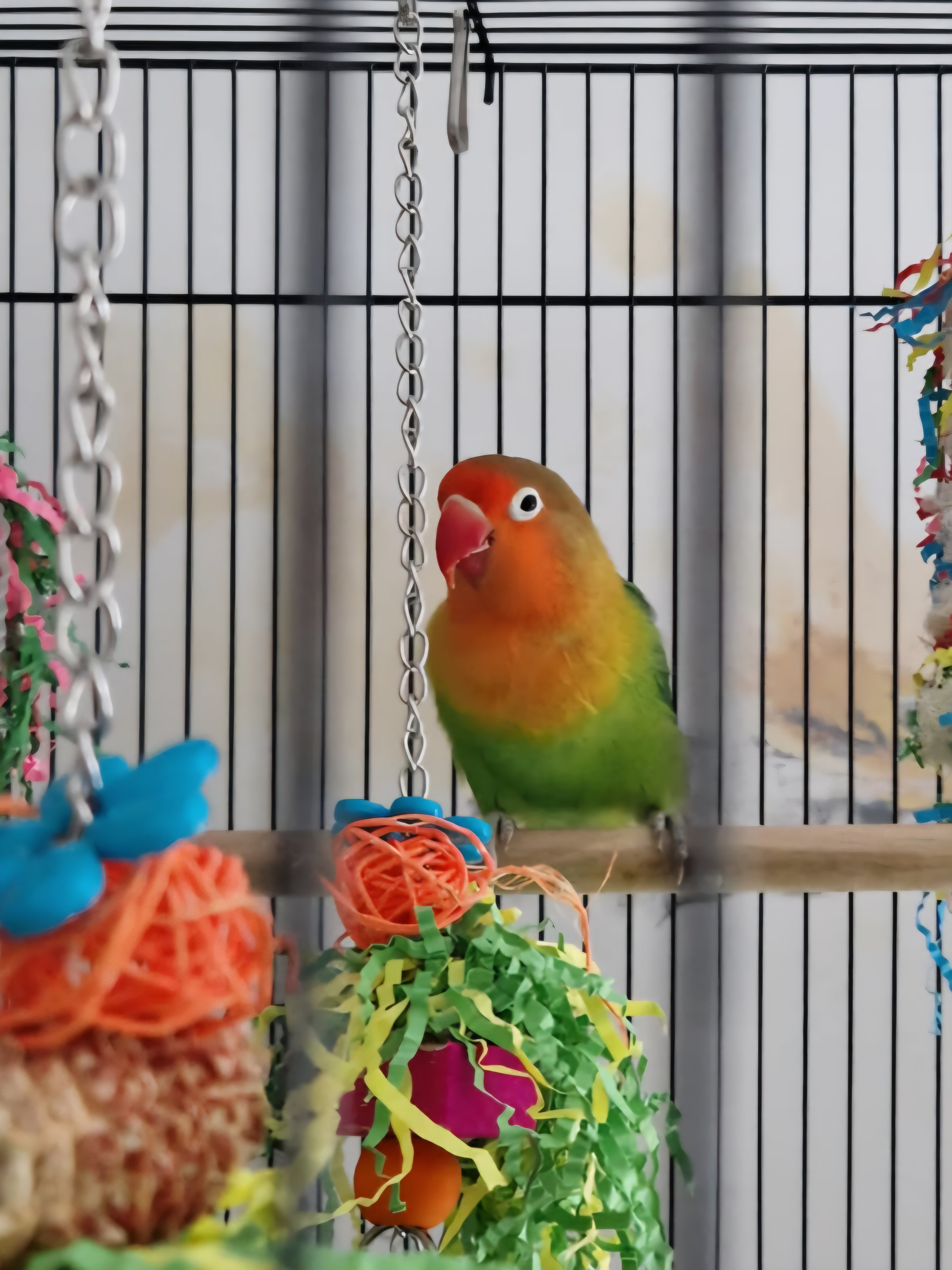 Beautiful pair of bonded love birds must be kept together needed to find thier forever home they are playful and noisy and with enough time and patience easily hand tamed as they where hand reared one is more confident than the other they love ot when u talk to to them and come to the cage and tweet back used to kids and dogs.