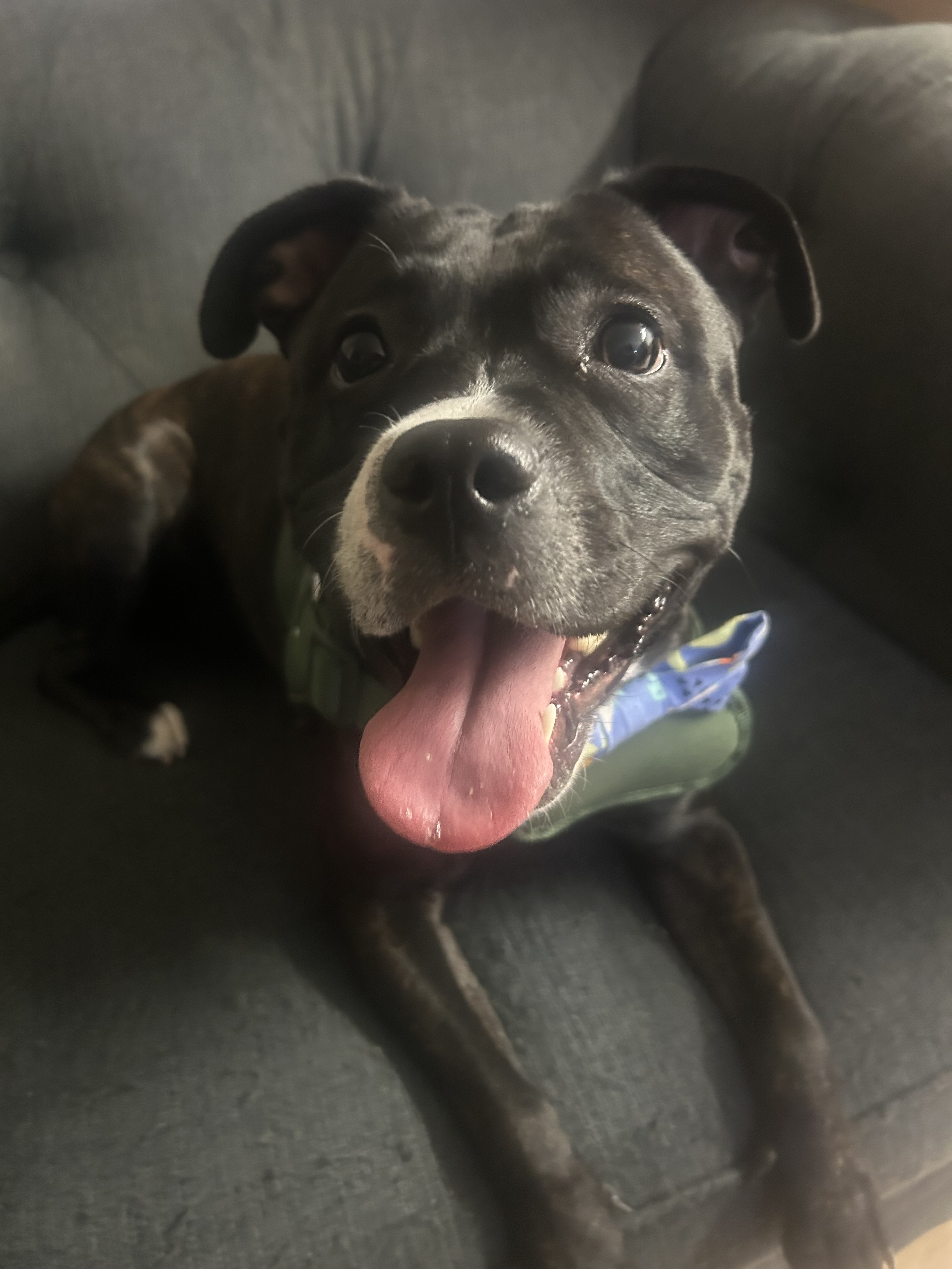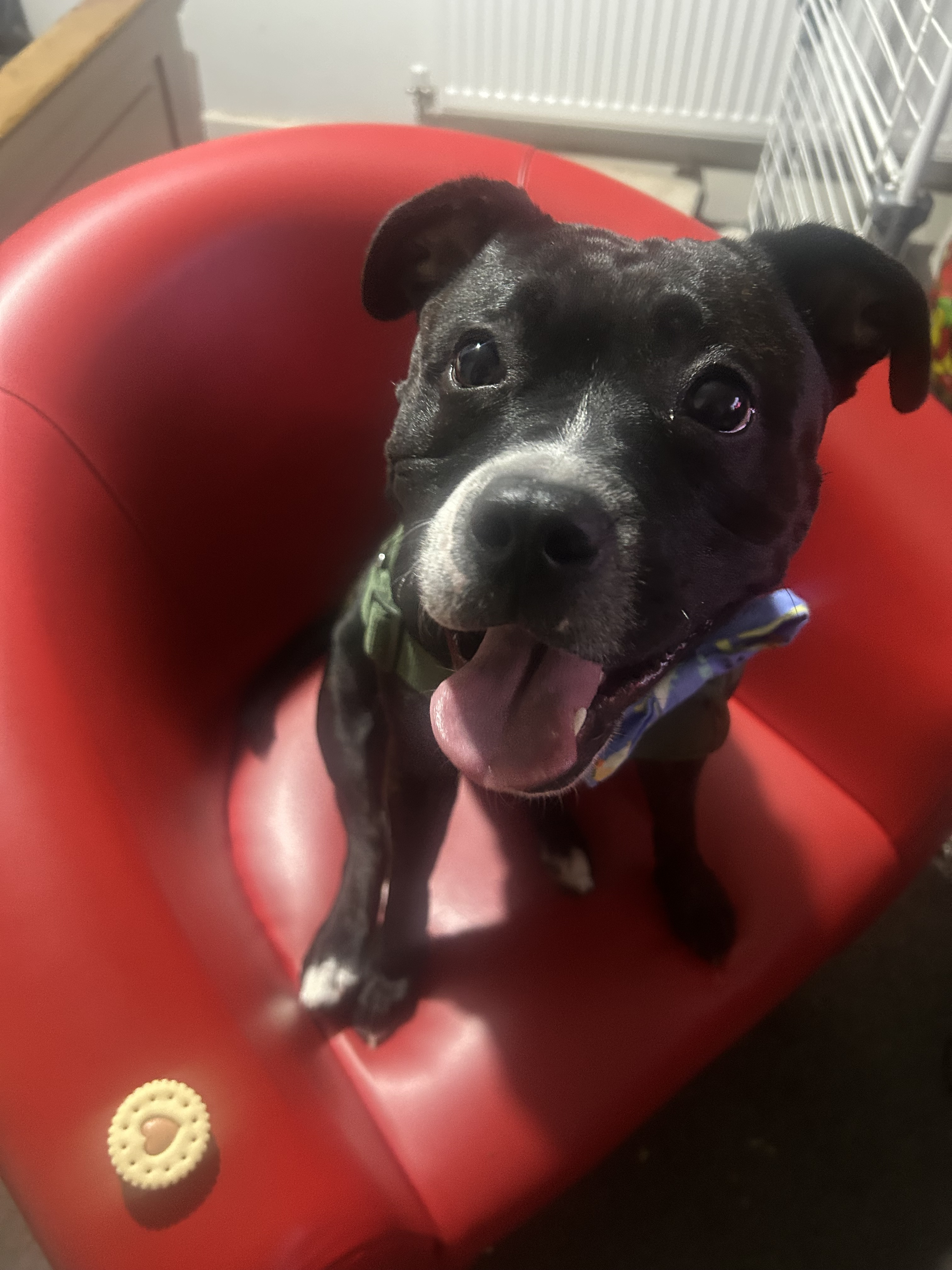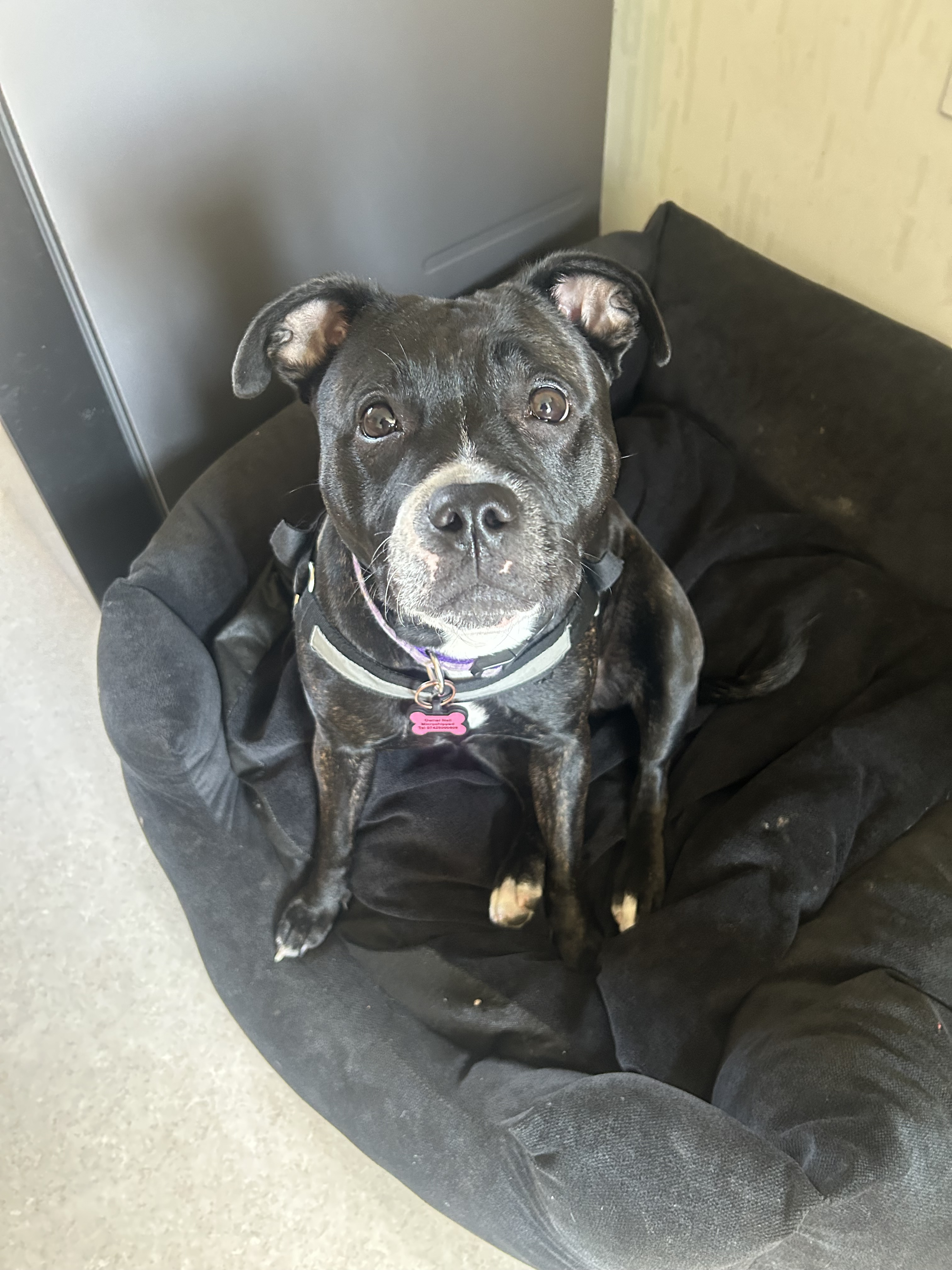 River a pedigree Staffordshire bull terrier without papers is a lovable young female dog. She loves running in the park and sniffing the nearest object. Sheโs intelligent and loves cuddling. She requires attention and more walkies, a big garden. She is happy around other dogs she is playful, she has never gotten into trouble with nasty behaviour. She just needs someone who can spend time with her and love her. Forever home ๐
