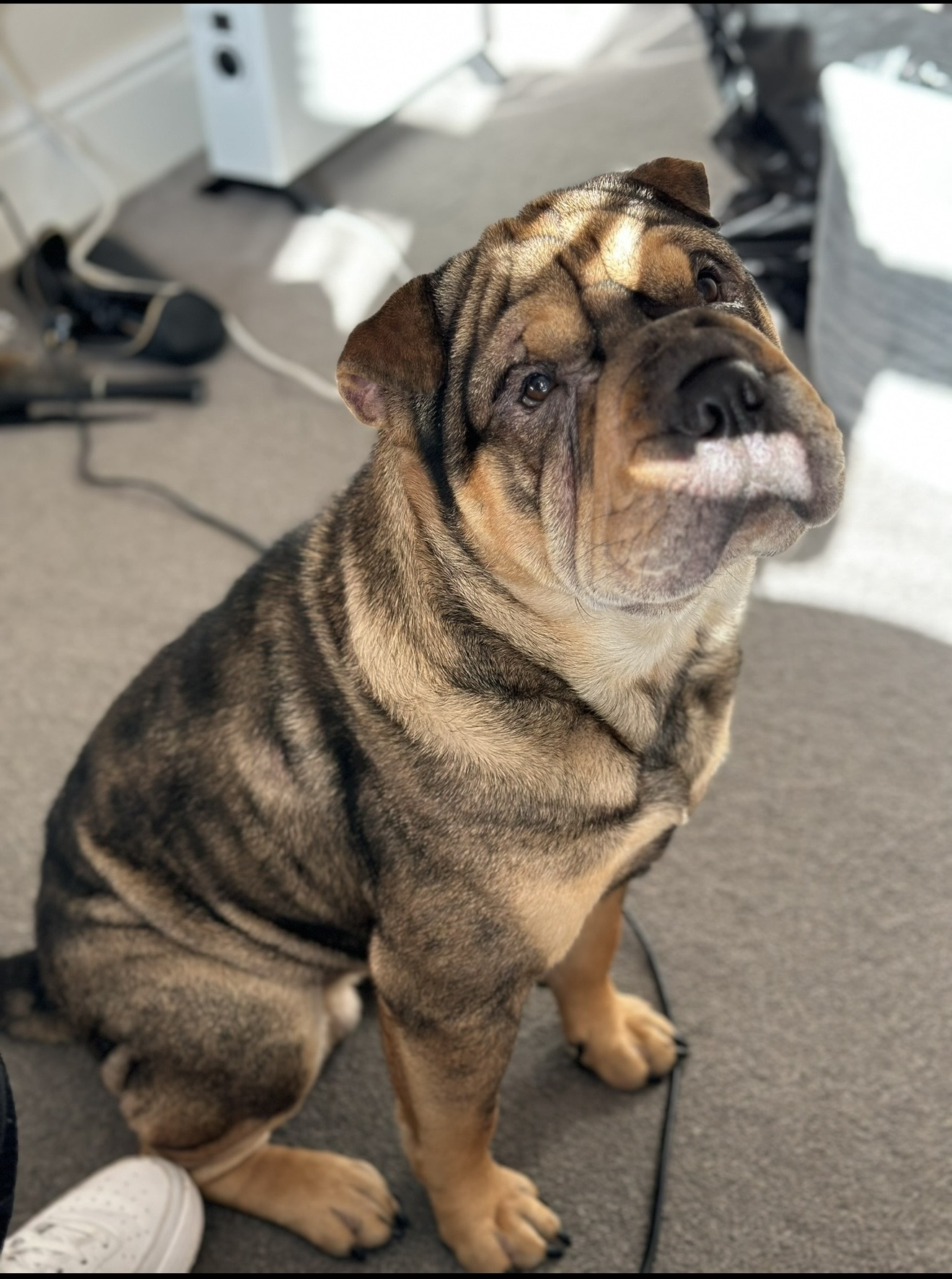 Meet our Bulldog x Shar Pei, a gorgeous, stocky dog with the sweetest wrinkly face and a heart to match. He is an energetic and playful companion who loves his walks, outdoor time, and a good game, but once he’s had his exercise, he’s more than happy to settle down for a cuddle. He has a loving and affectionate nature and enjoys being close to his people, often choosing to relax beside you or lean in for fuss. He is loyal, gentle, and thrives on companionship, making him a wonderful family dog in the right home. This handsome boy is confident yet calm indoors, enjoys routine, and responds well to positive attention. He would suit a home that can offer him regular exercise, affection, and a comfy spot to nap. In return, he will reward you with endless loyalty, cuddles, and companionship. He is looking for a loving forever home where he can be part of the family and enjoy both active days and quiet evenings.