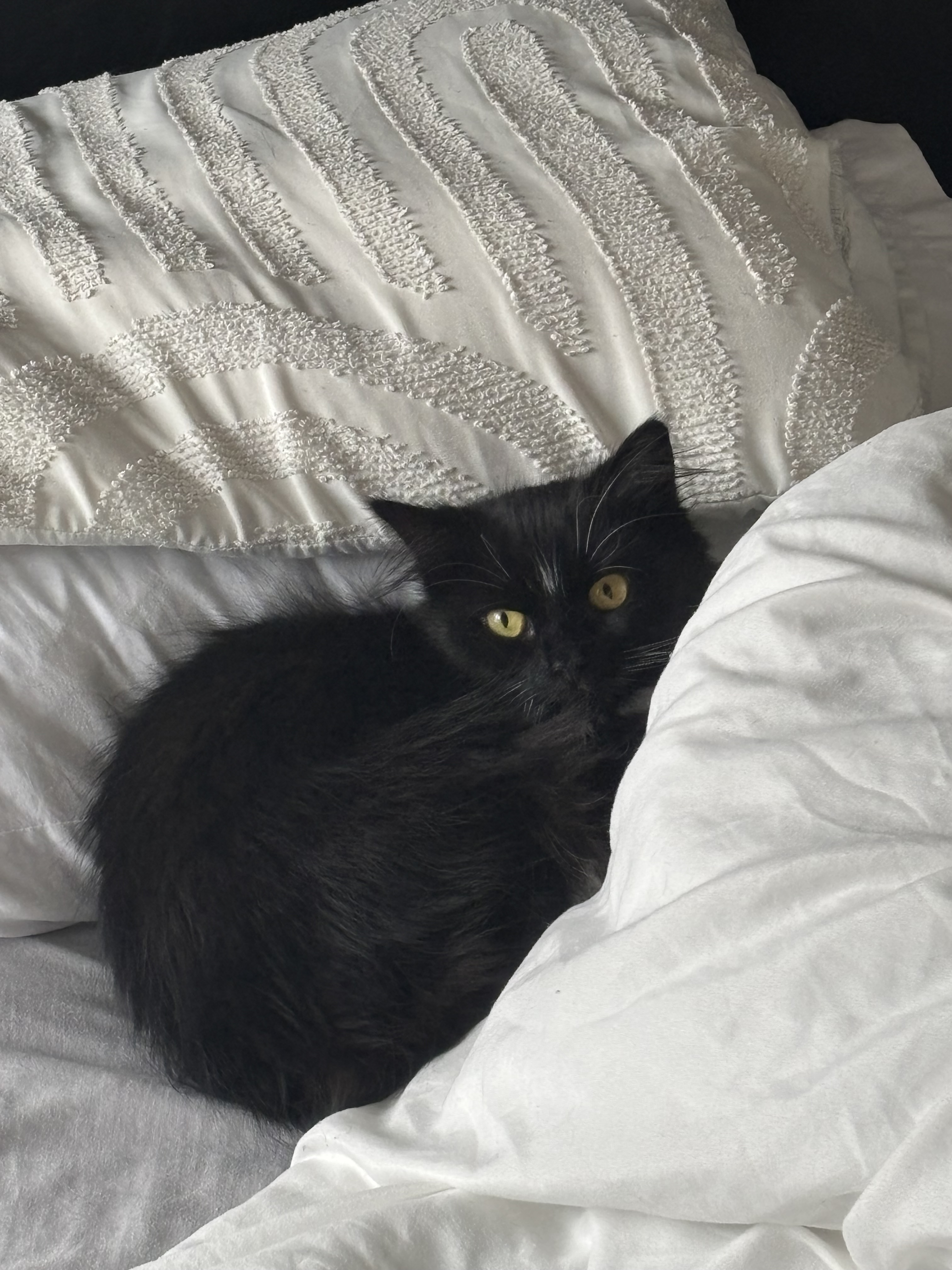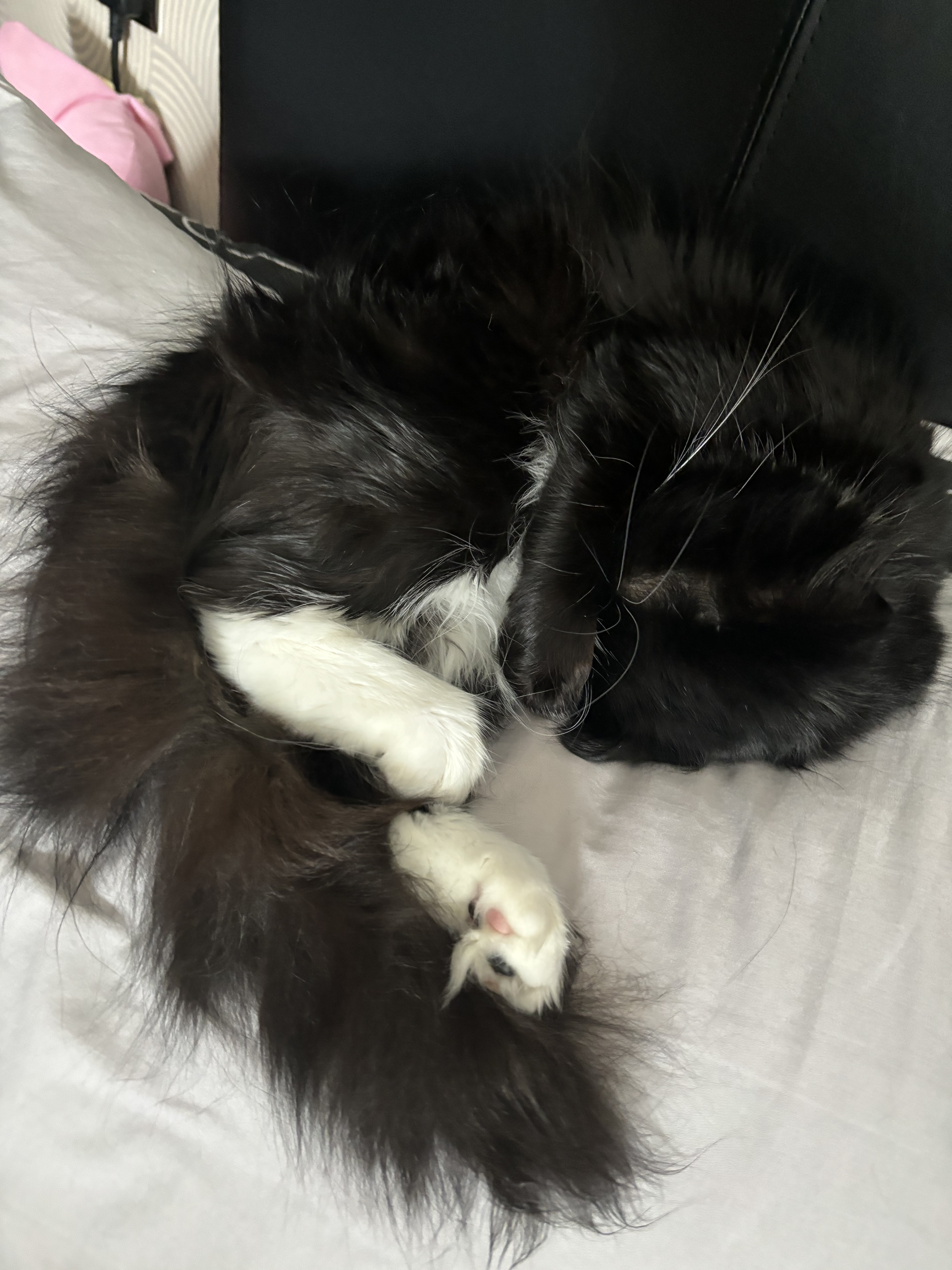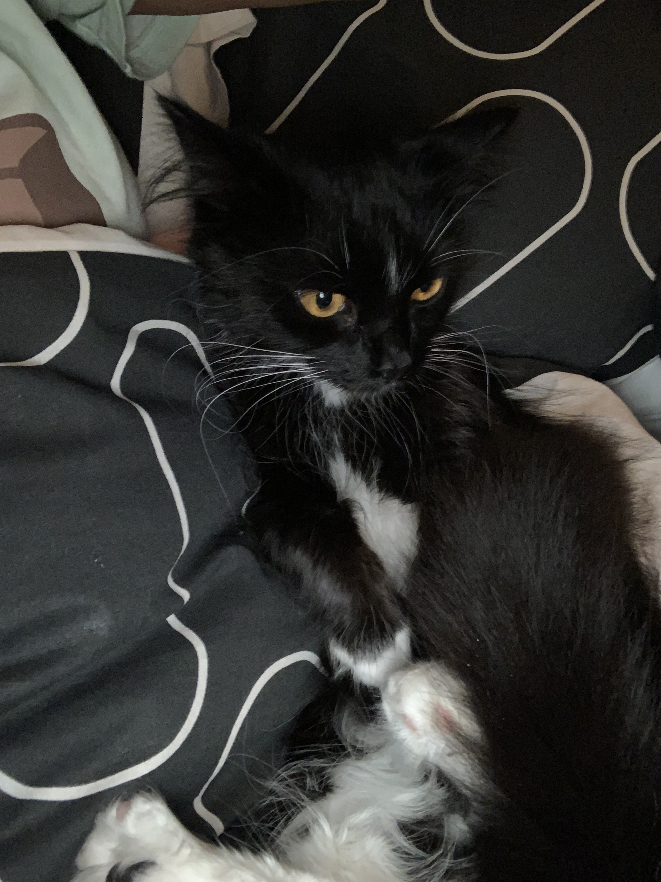 Rolo is generally very laid back, and very timid. She will hide away for most of the day, but loves cuddles at bed time! She is a very sweet cat and causes no trouble at all, she’s absolutely adorable. Loved being outdoors too. Very selective when it comes to cuddles but is very soppy when she’s comfortable.