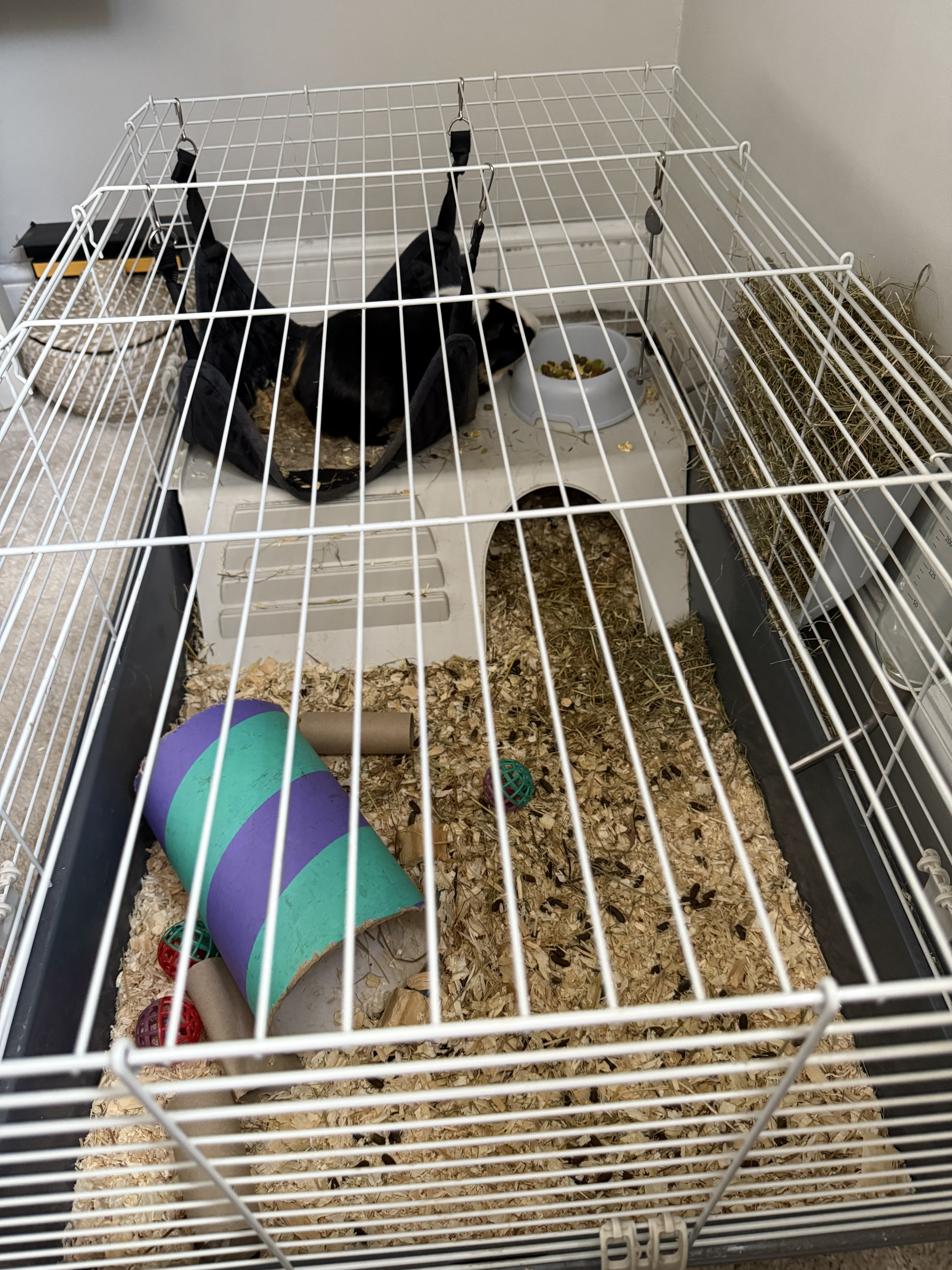 Black and white guinea pig, that is 5 years old and is very friendly who needs lots of social interactions and care.