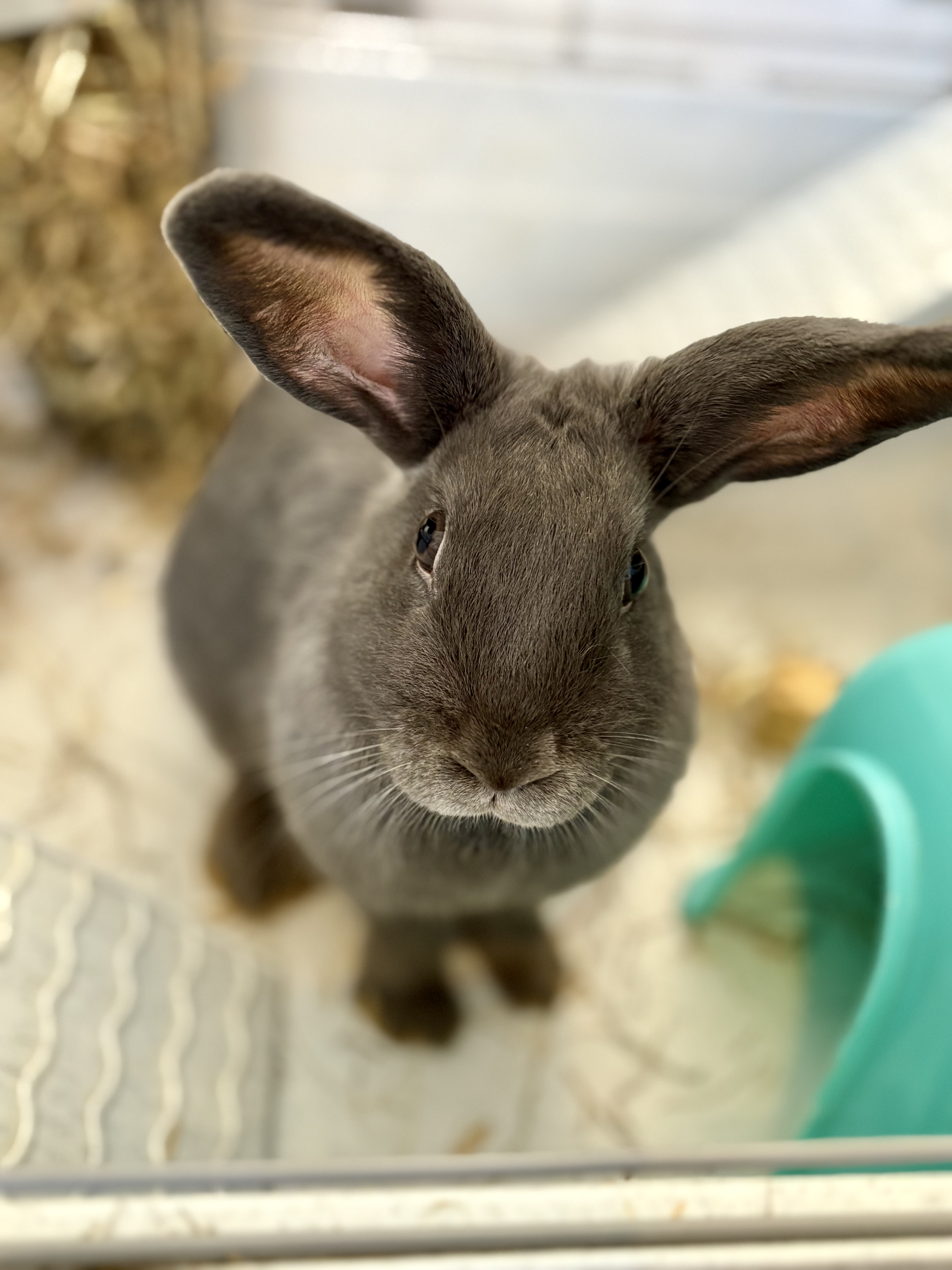 Grey rabbit Likes to run around and climb, indoor rabbit as that’s all he’s known, will come with cage and everything he needs